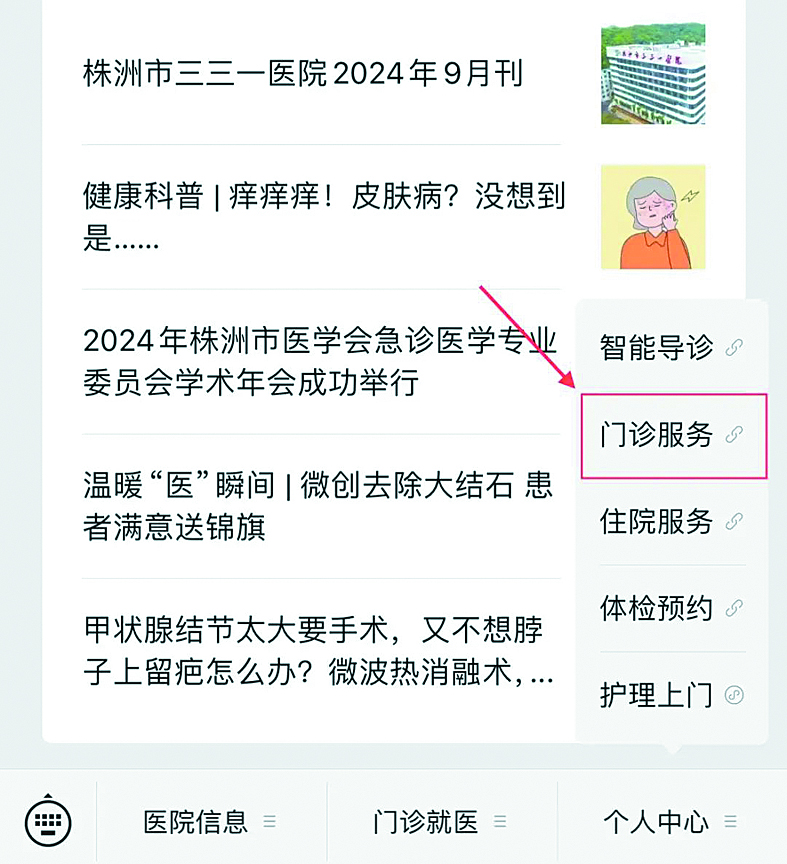 1.打开微信,搜索并关注微信公众号“株洲市三三一医院”。