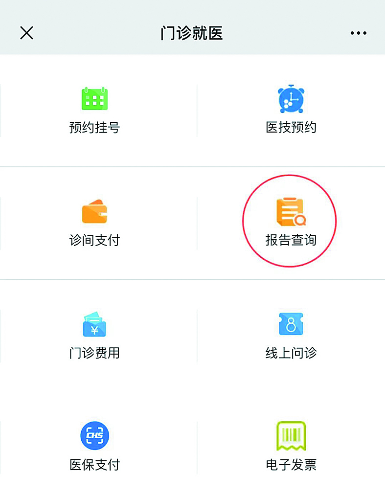 3.若未绑定,请先绑定“电子健康卡”;若已绑定,选择“报告查询”—“检查报告”直接查看电子报告和云影像资料。(如图二)