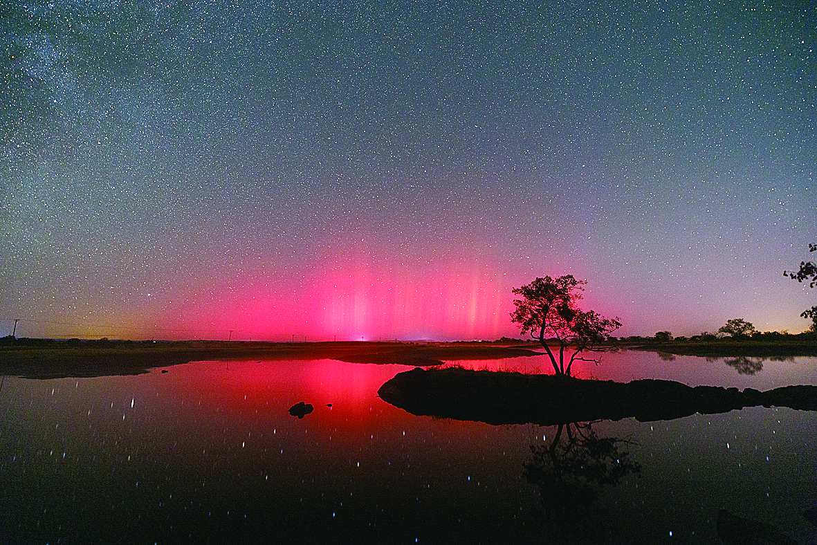 近日,在黑龙江省牡丹江市镜泊湖熔岩台地拍摄的极光。