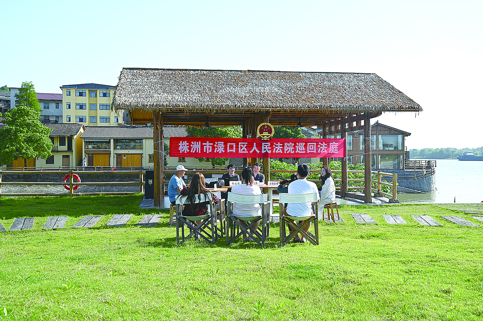 渌水汤汤,晓风阵阵。株洲市渌口区人民法院朱亭法庭坐落于历史悠久的千年古镇朱亭镇,倚靠古老的大码头而建。近年来,朱亭法庭坚持发展新时代“枫桥经验”,延伸司法职能,深入社会基层治理,在山清水秀的古镇树立司法为民、司法护企新“枫”尚。