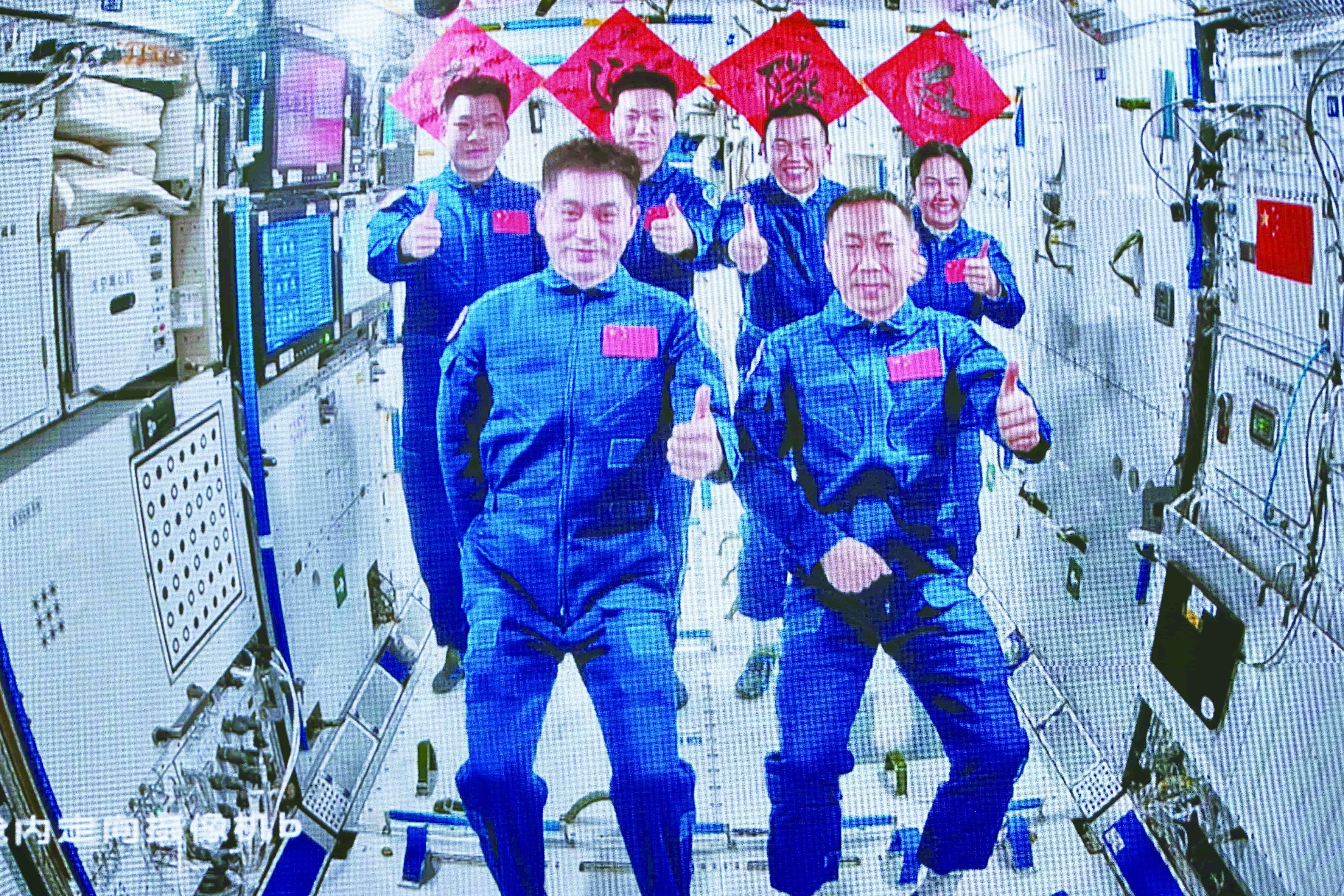 10月30日在北京航天飞行控制中心拍摄的神舟十九号航天员乘组和神舟十八号航天员乘组“全家福”。详见第08版