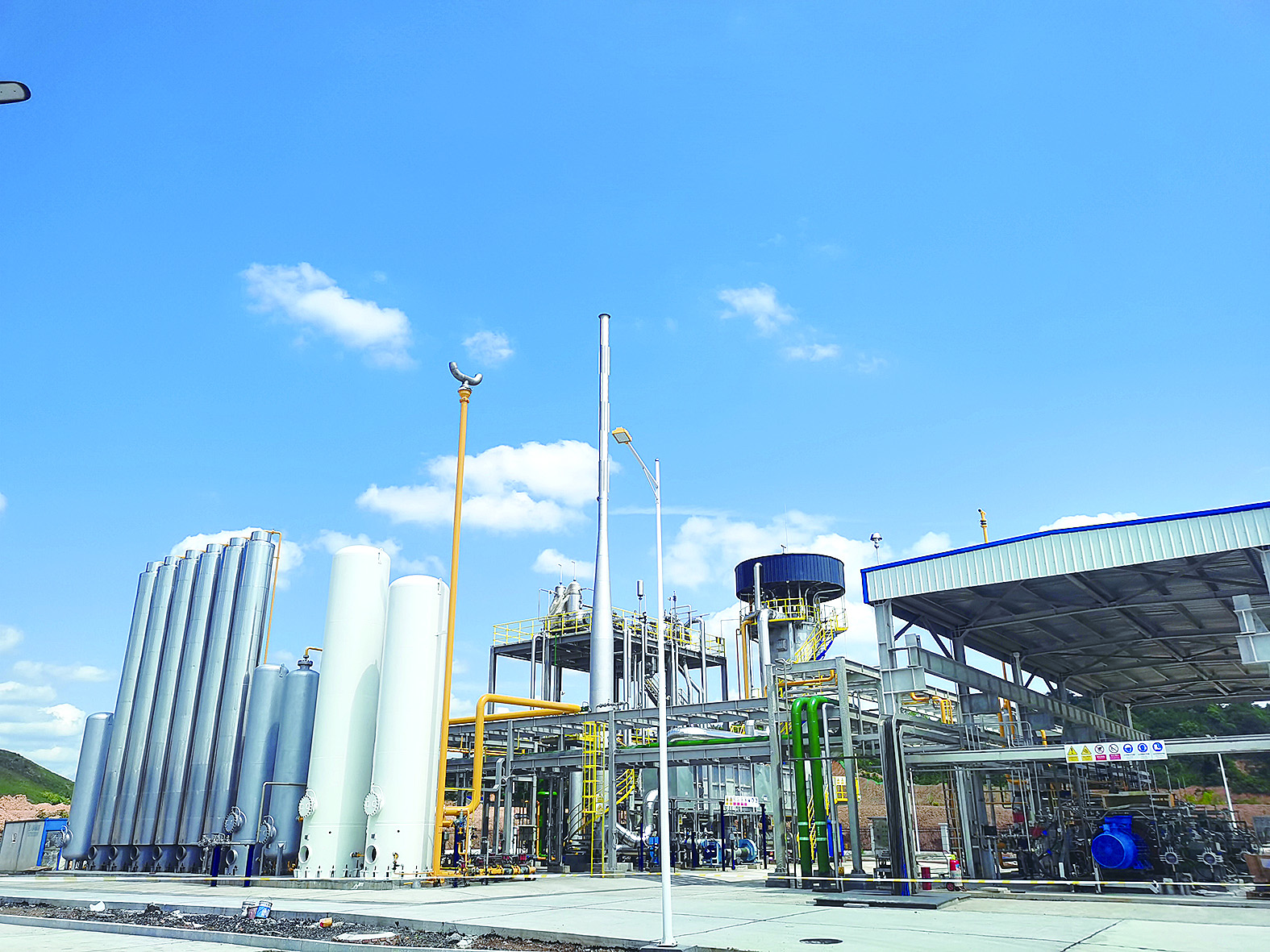 株洲日报讯(全媒体记者/王娜 通讯员/刘宇) 10月23日下午,晴天。在荷塘高新区湘钢梅塞尔株洲制氢项目现场,天然气制氢和工业气体充装装置在蓝天下伫立。