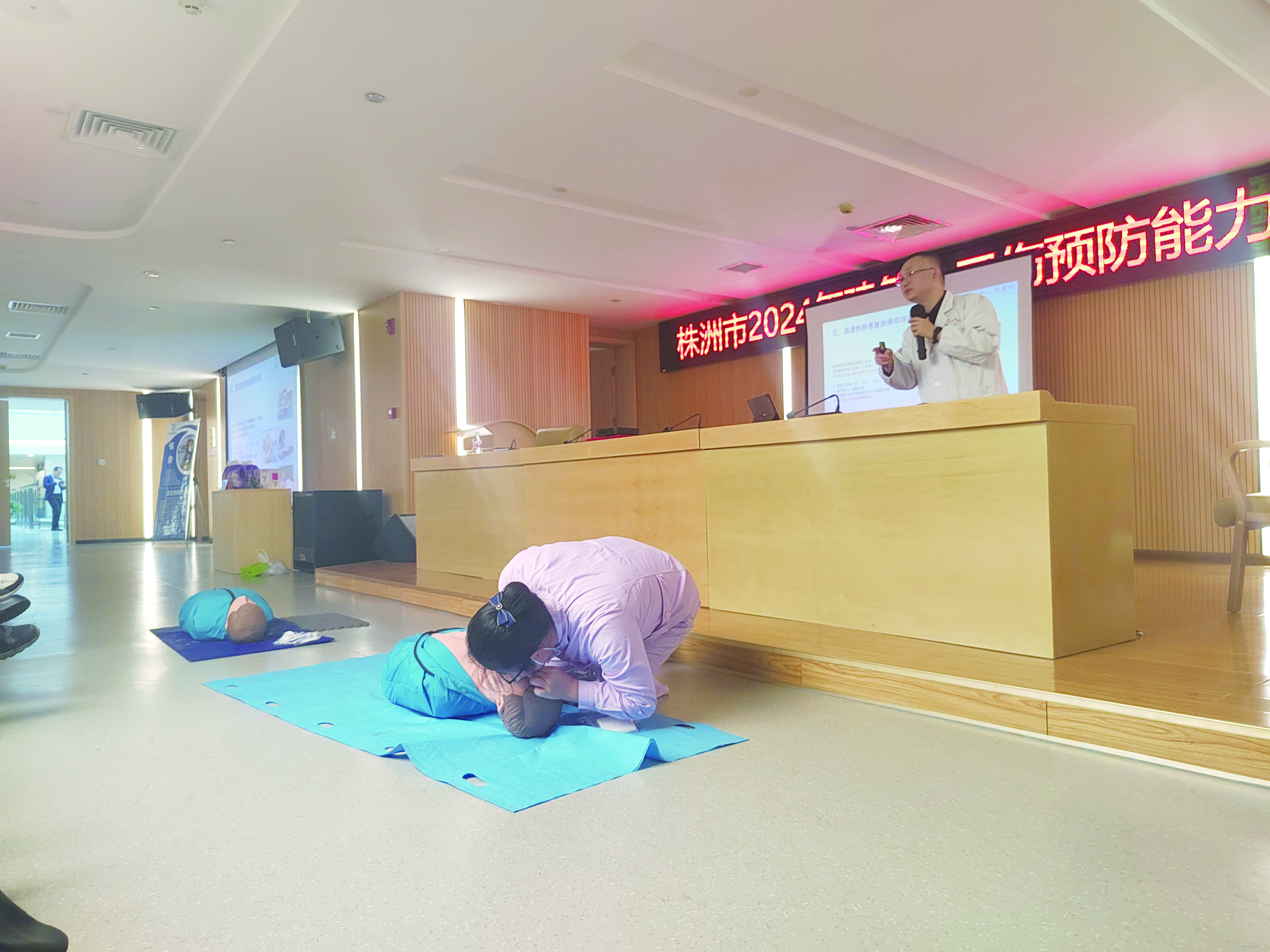 培训现场,医护人员示范心肺复苏技巧。 记者/何春林 摄