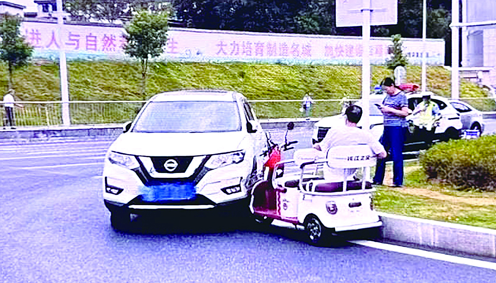 “老年代步车”匝道逆行与小车相撞。 通讯员供图