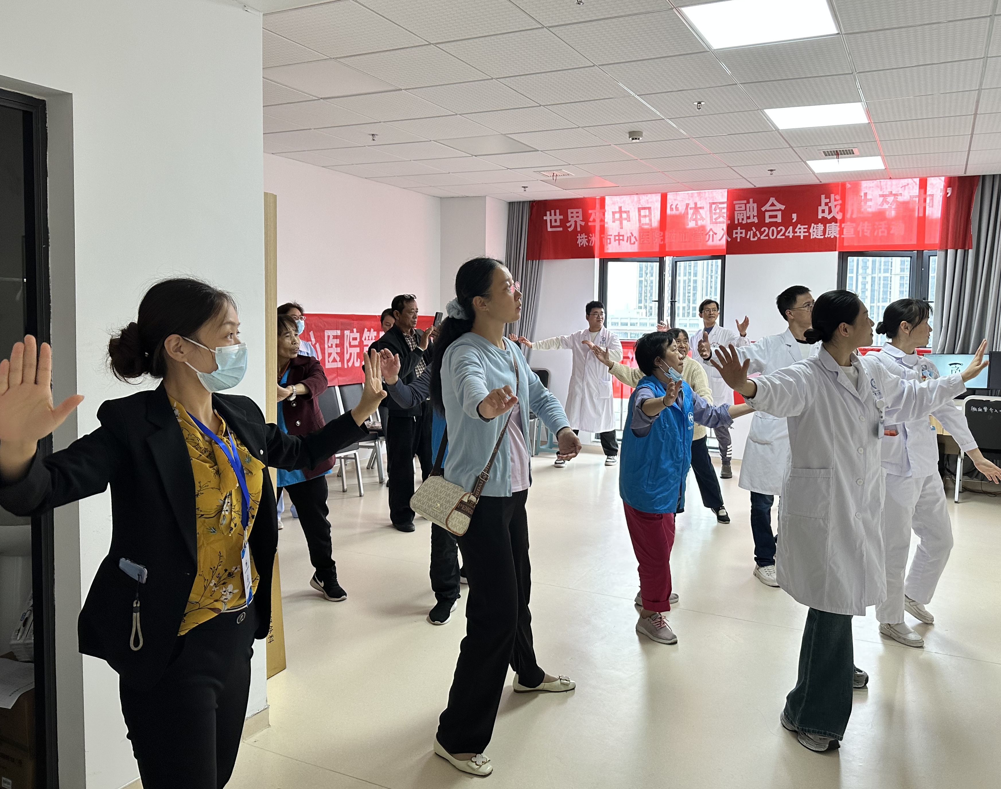脑卒中健康宣传活动吸引不少住院患者及问诊市民参加。医务人员现场表演太极拳,帮助大家树立“运动是良医”的健康理念。