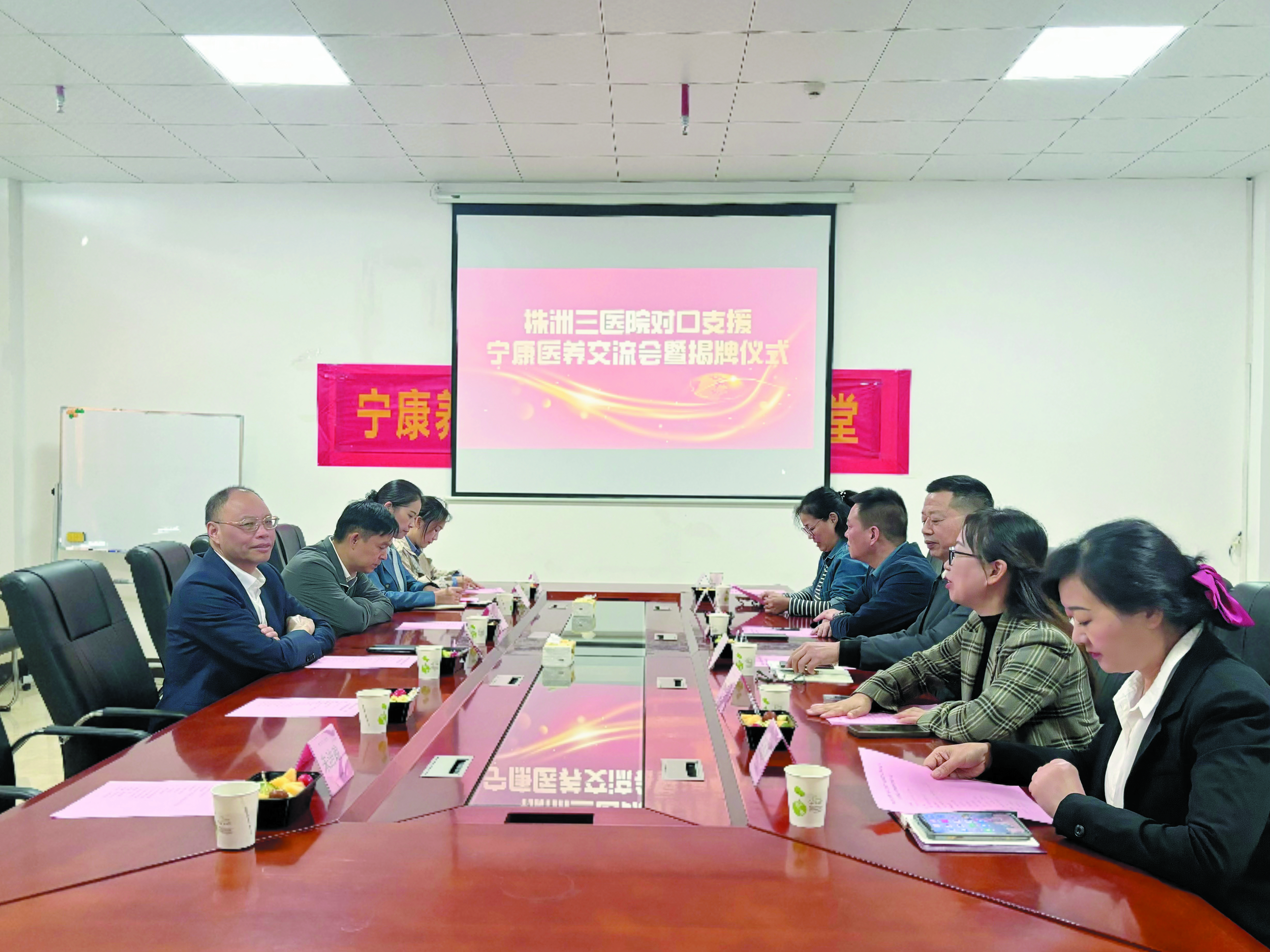 10月23日,株洲市三医院与宁康医院养护院对口支援交流会议暨揭牌仪式在宁康医院顺利举行。株洲市三医院党委书记陈湘清、院长李小斌,以及宁康医院院长隆高强、常务副院长赵迎春等领导和相关工作人员共同见证了这一重要时刻。