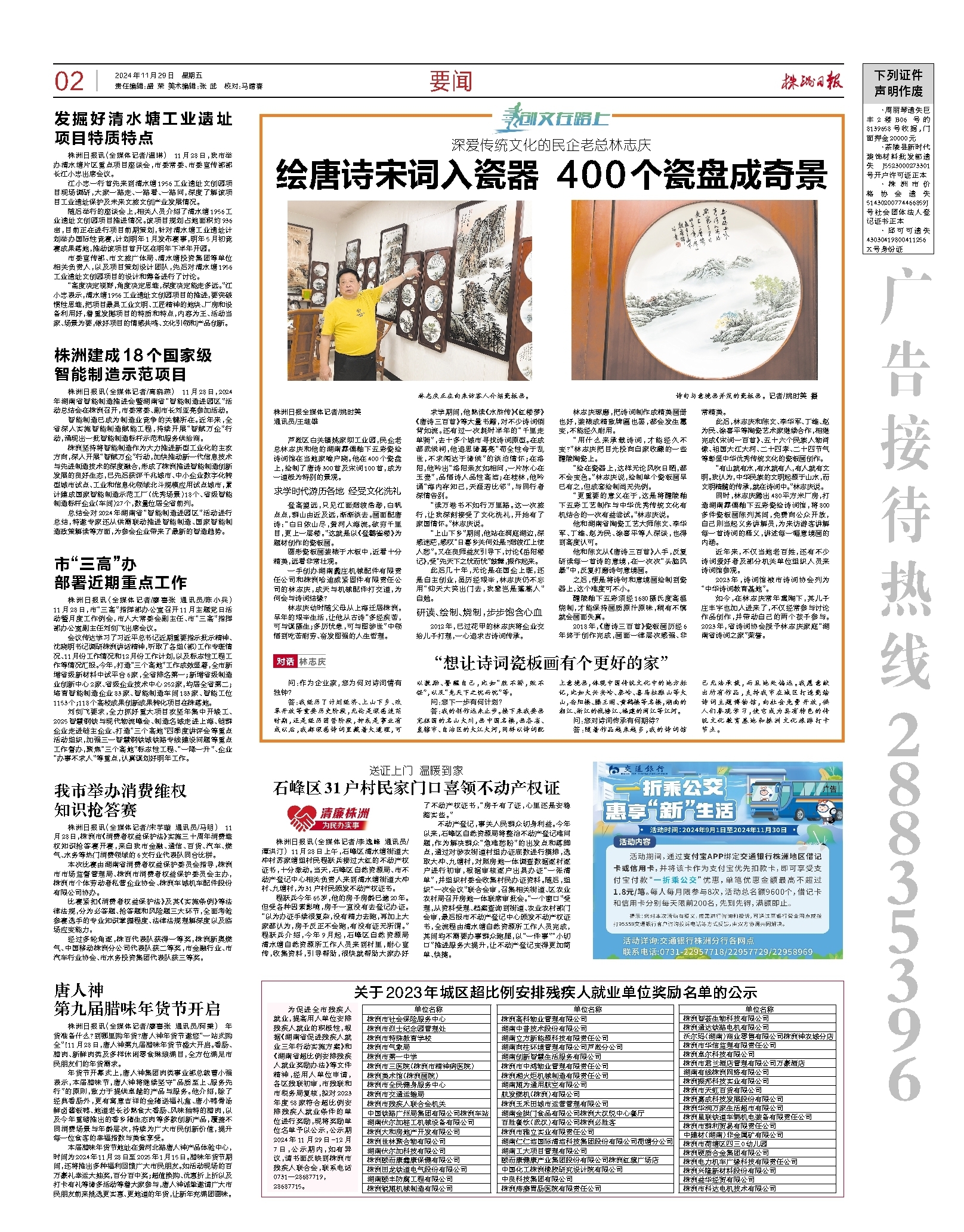 绘唐诗宋词入瓷器 400个瓷盘成奇景