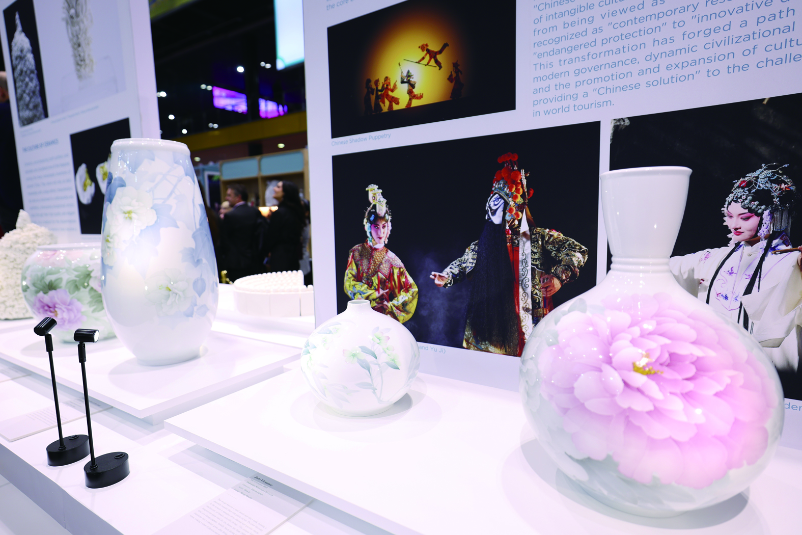 中国展区位于亚洲馆入口处,占地210平方米,是自2020年以来参展商数量和总面积最大的一次。中国展区的主题是“中国旅游高质量发展”,聚焦人与自然的和谐共存,倡导绿色可持续的旅游实践。