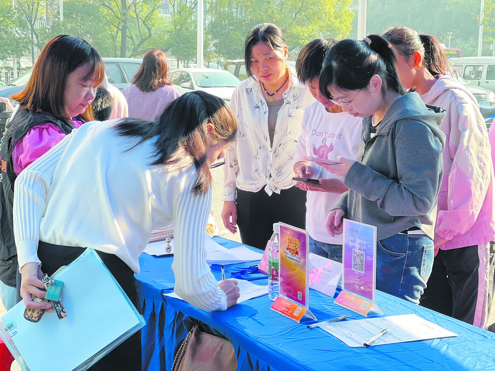 11月13日,在石峰区田心街道亿都新天地小区前坪,一场招聘会热烈举行。此次招聘会由叫鸡岭社区、湖南红海人力资源有限公司株洲分公司联合举办,创新采用“红海直聘”平台进行“直播带岗”模式,直播间共上线65个岗位。同时招聘会线下汇集了20家企业,提供销售、普工、家政育儿、快递等多个行业的60余个就业岗位。
