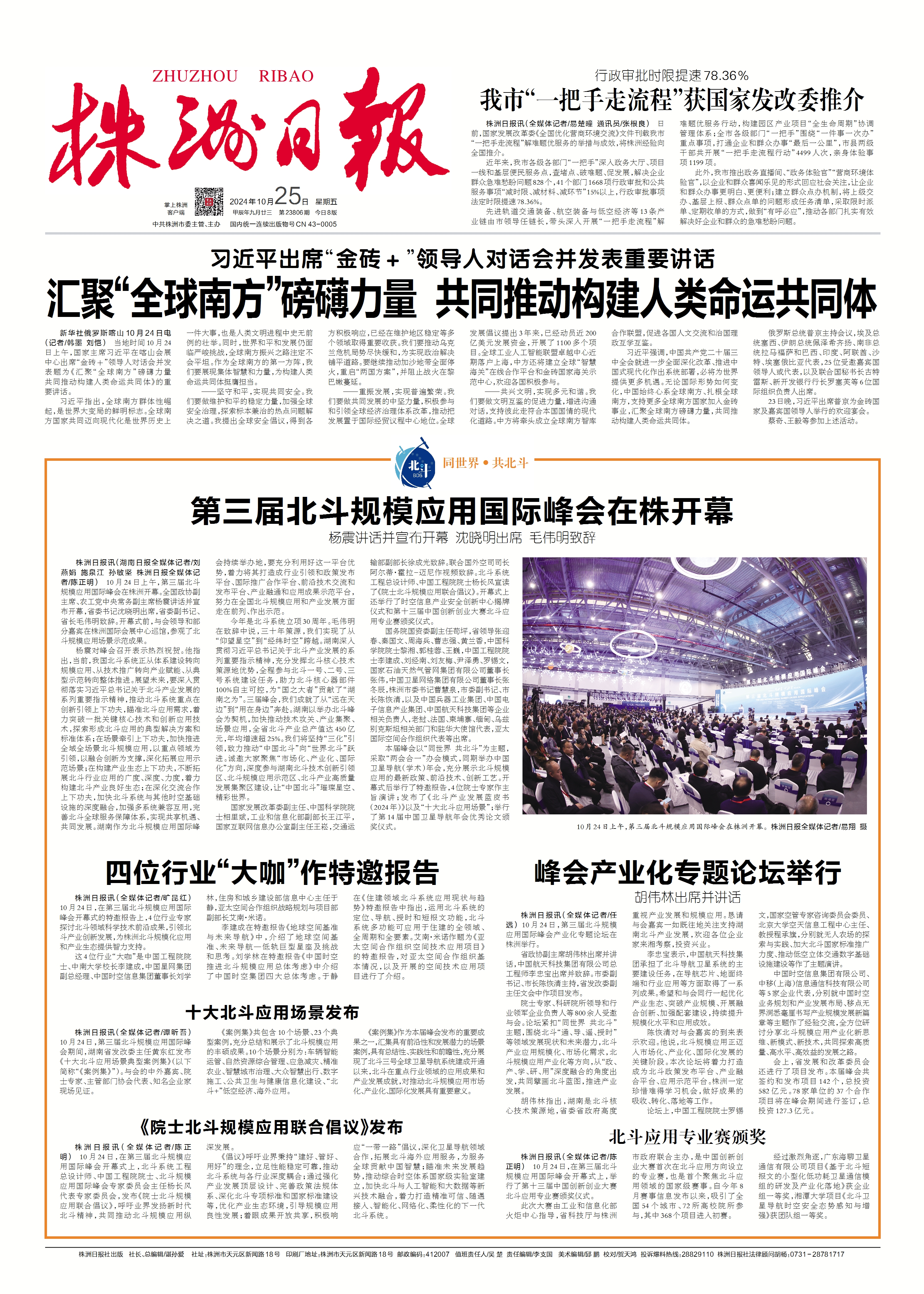 10月25日,《株洲日报》01版