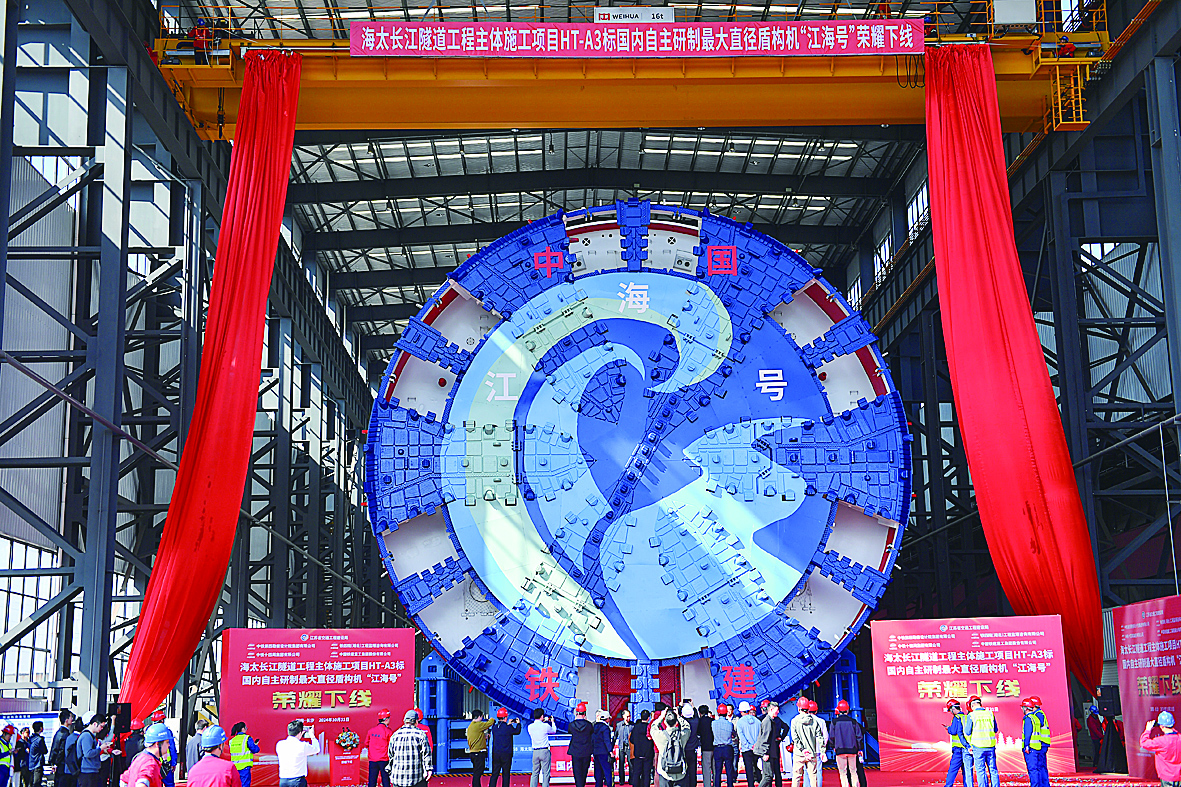 超大直径盾构机被誉为“大国重器”,其直径通常达到14米及以上。中国铁建重工集团董事长赵晖说,“江海号”成功下线,标志着16米级国产超大直径盾构机研制和产业化实现了新突破。