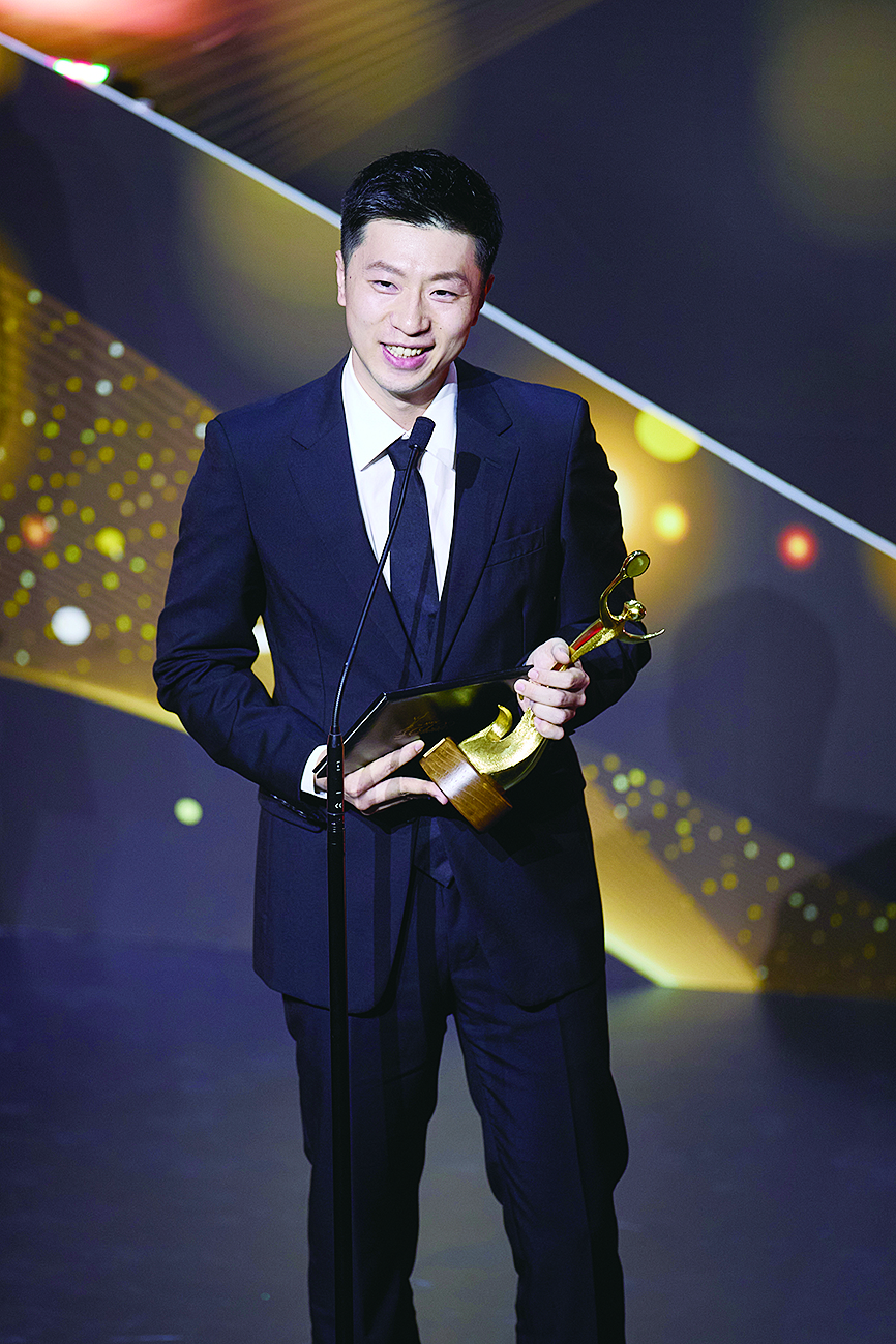10月30日,马龙在颁奖典礼上发表感言。 新华社记者 孟鼎博 摄