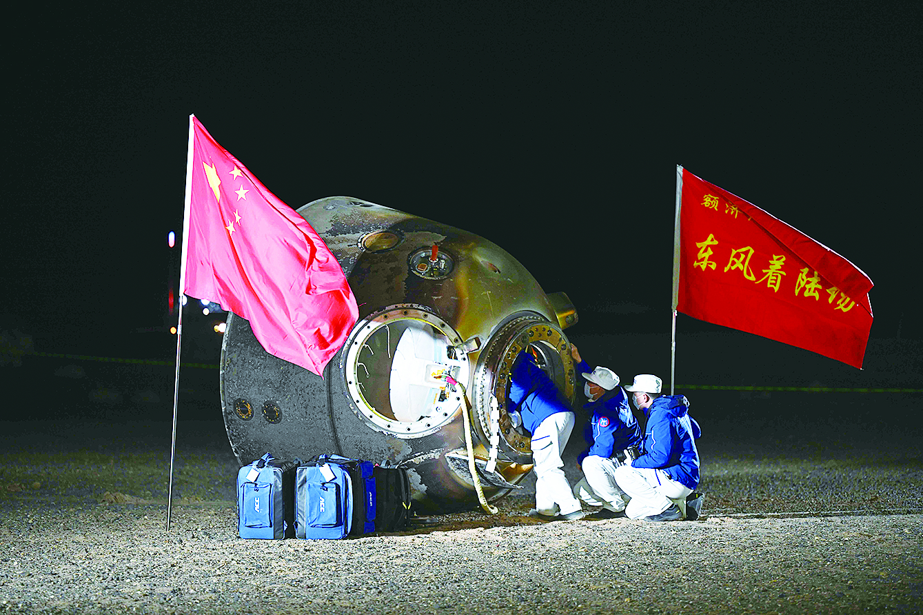 11月4日01时24分,神舟十八号载人飞船返回舱在东风着陆场着陆。 新华社记者 连振 摄