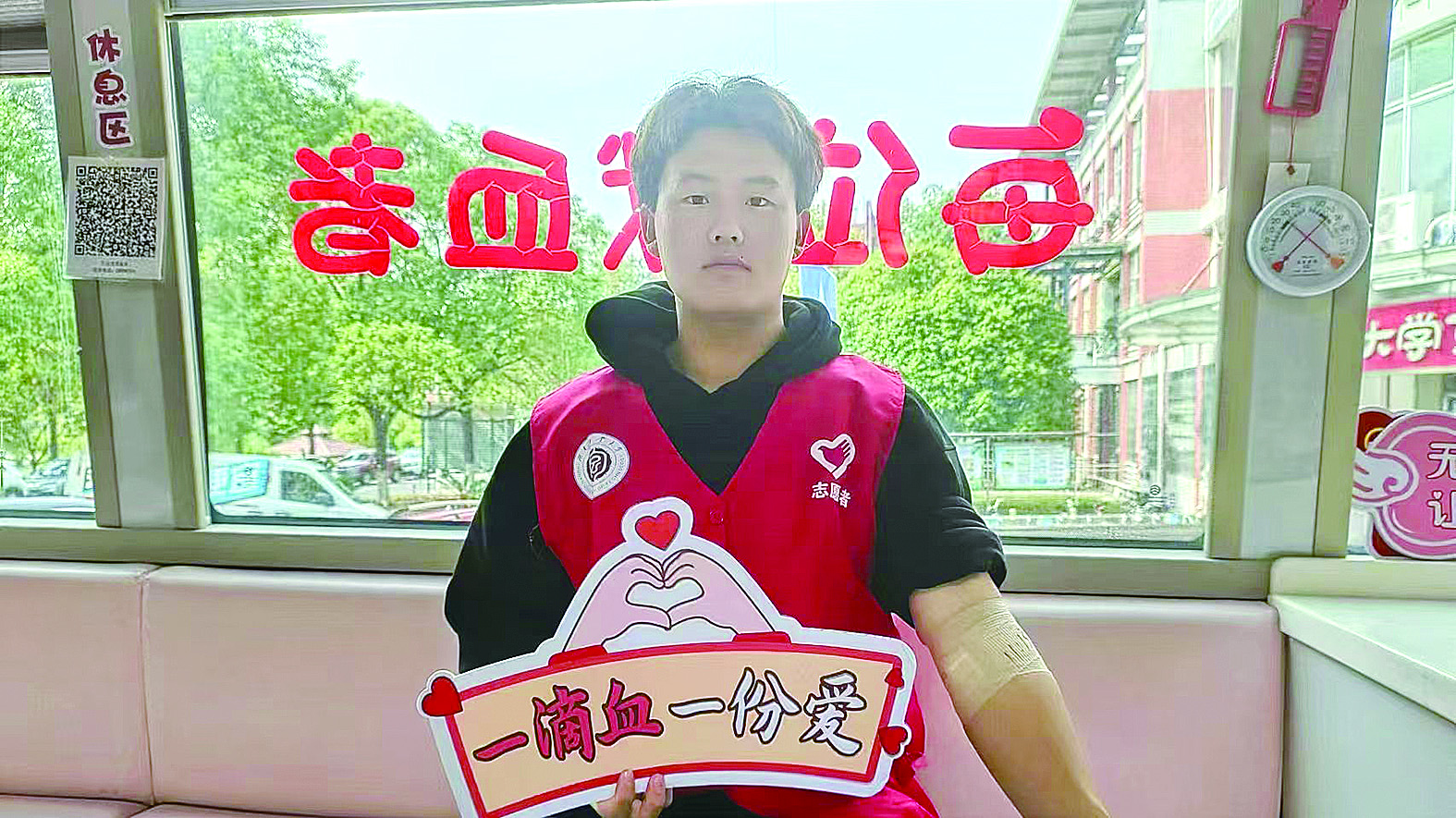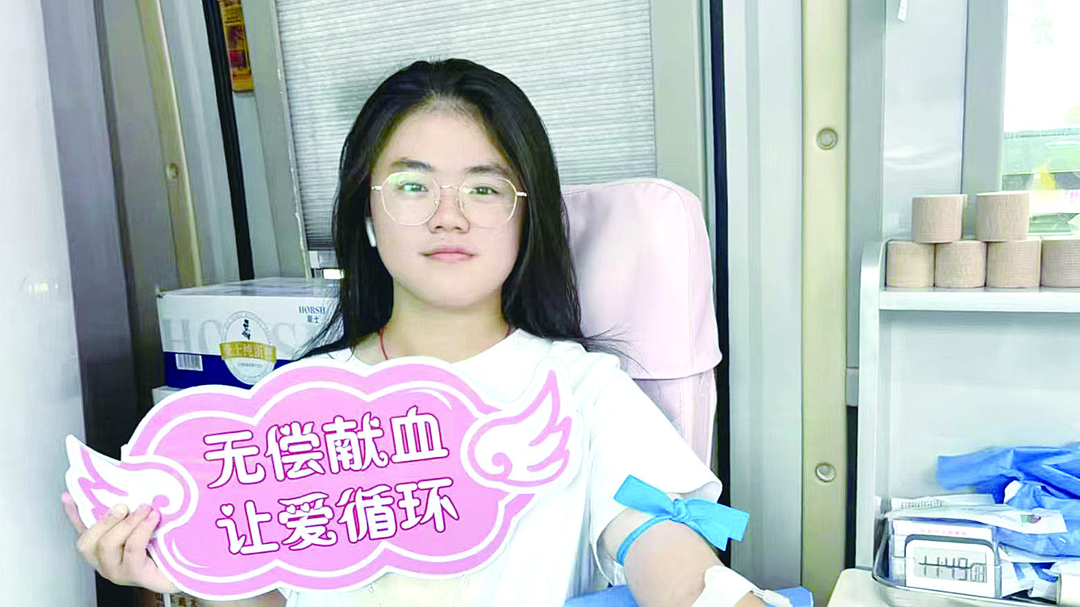许若珊同学正在献血。