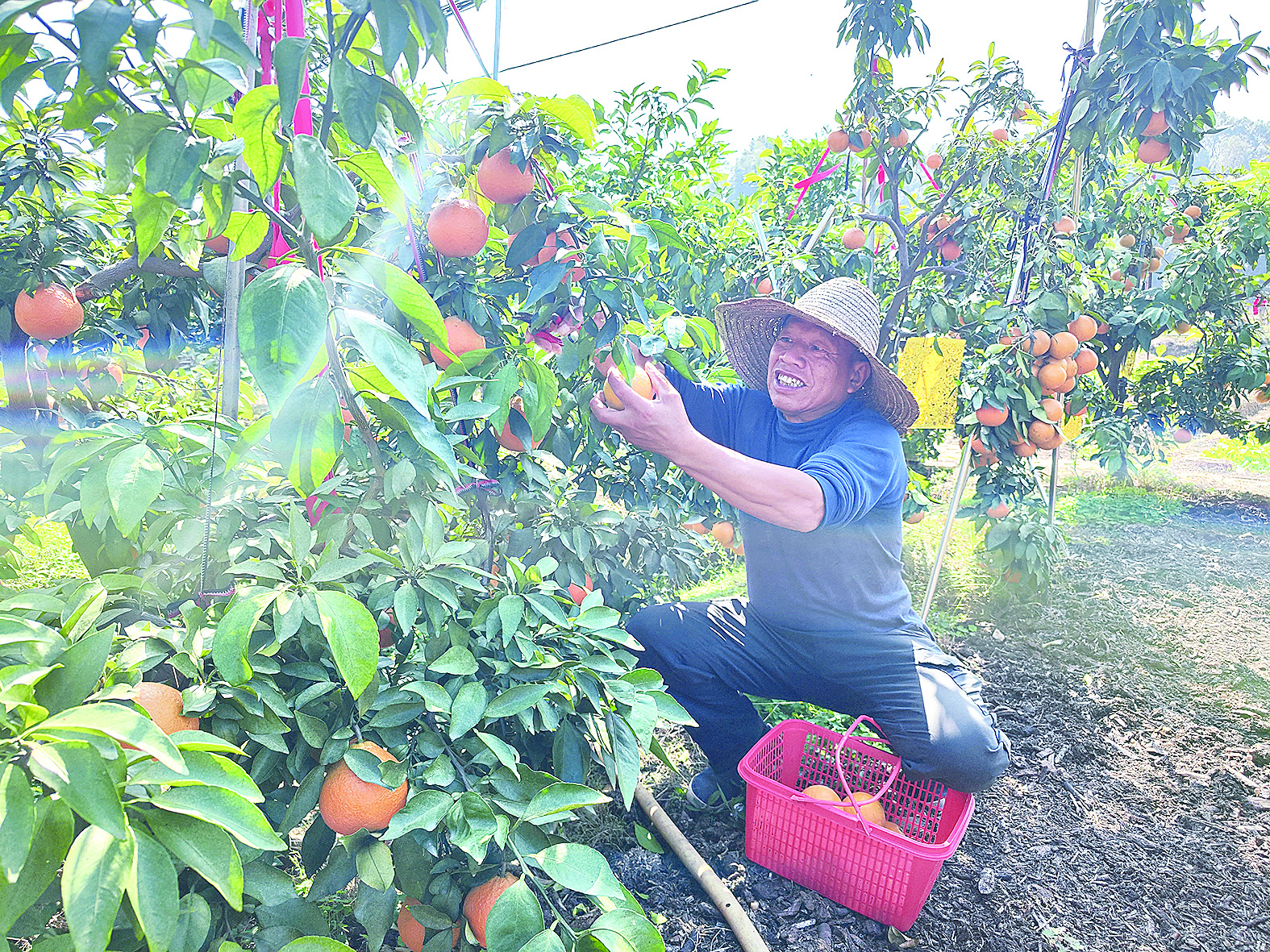 果农们正在橘林中忙着采摘分拣。 记者/杨凌凌 摄