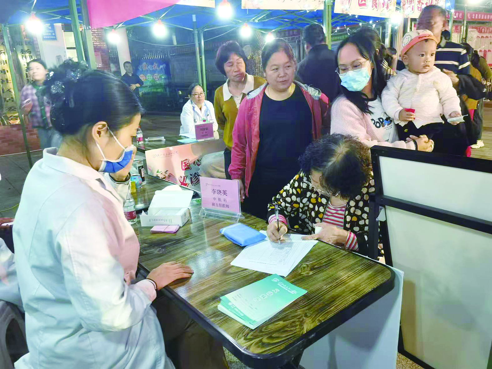 “我看这里围了好多人,就过来看看,原来是推拿体验。我脖子有些不舒服,体验了一下,很舒服,挺好的。”11月8日晚6时,芦淞区龙泉街道杨柳冲社区前坪热闹非凡,社区联合株洲市331医院开展的“中医文化夜市”吸引众多居民驻足并给予好评。