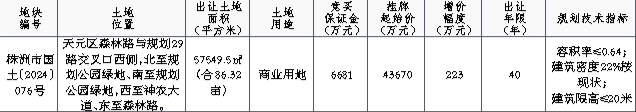 七、本次网上挂牌出让的详细资料和具体要求,见《株洲市网上挂牌出让国有建设用地使用权规则》、《株洲市国有建设用地使用权网上出让系统操作说明》和《株洲市国有建设用地使用权网上挂牌出让须知》等文件,有意竞买者可登录株洲市公共资源交易平台******查询。申请人可于2024年11月11日至2024年12月09日,在网上浏览或下载本次挂牌出让文件,并按上述文件规定的操作程序参加竞买。