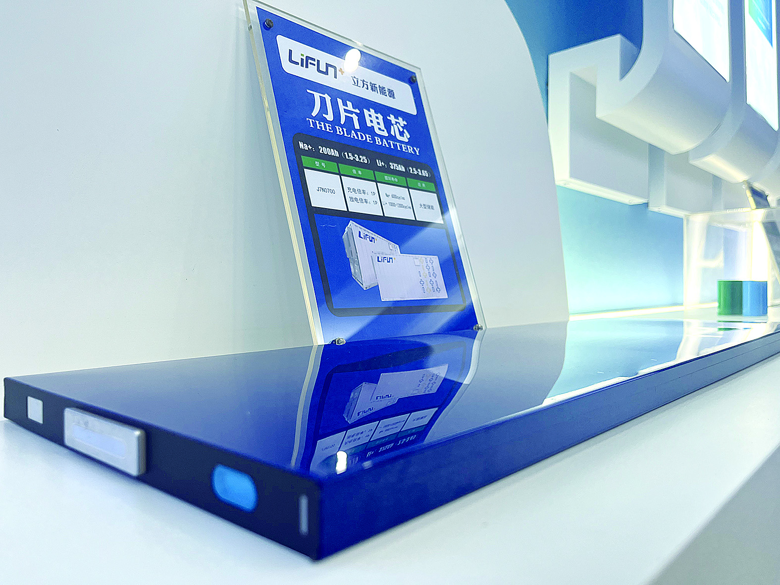 记者在立方新能源展厅内看到了这片钠电领域的最新产品:长条型的形态,厚度仅有2厘米左右,就像一块刀片。