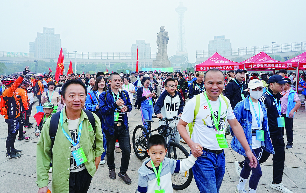 毅行参与者从神农城广场出发。 株洲日报全媒体记者/刘震 徐健浩 摄