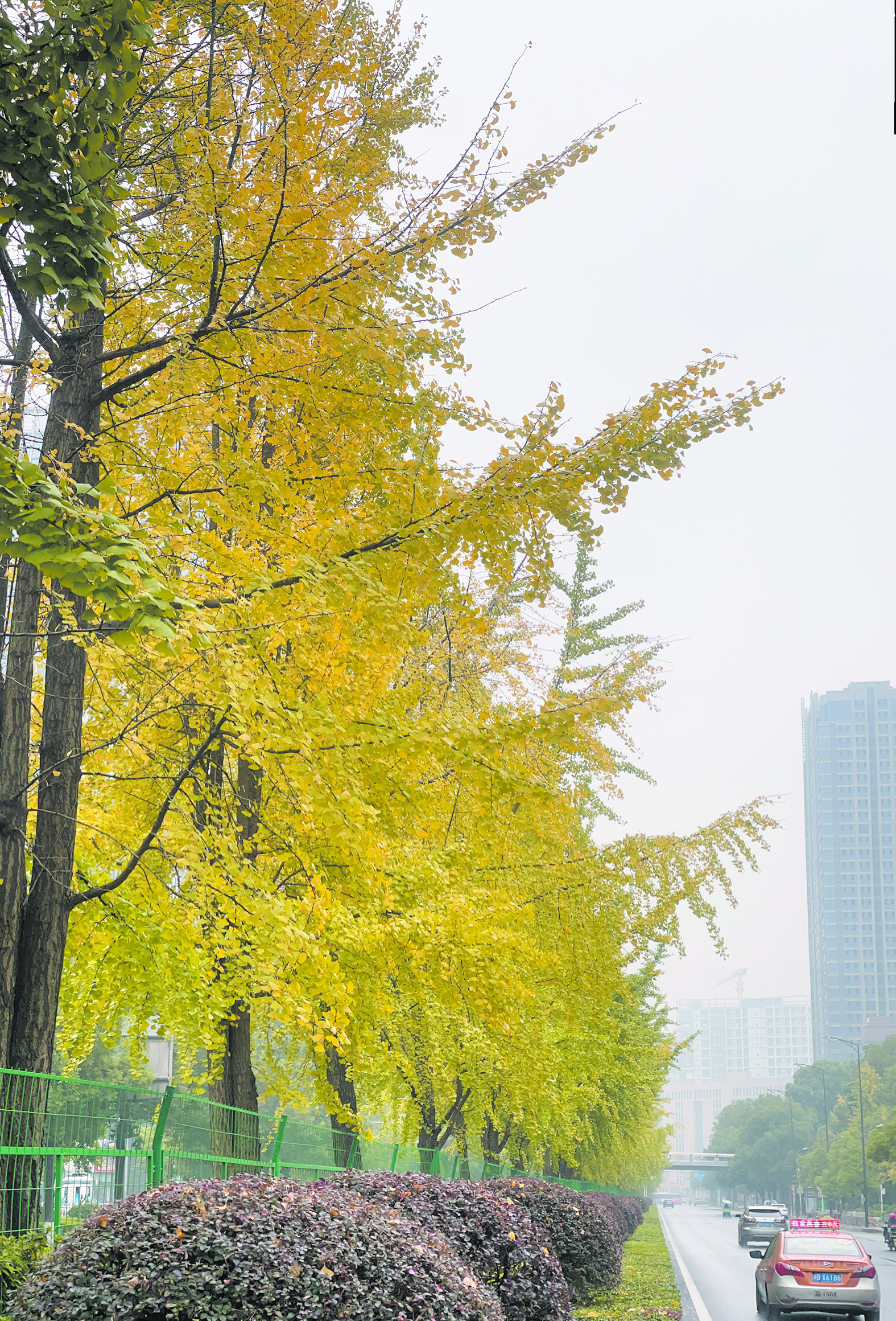 季节更替,大自然“换装”。天元区庐山路上银杏树叶陆续由绿转黄,预计本月底到下月初将迎来最佳观赏期。图为11月24日,庐山路上的银杏树。 株洲日报全媒体记者/伍靖雯 摄