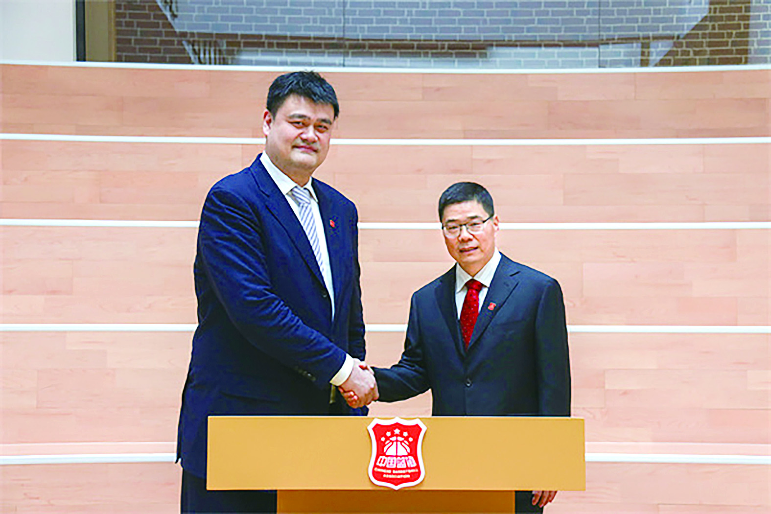 姚明与郭振明(右)。 网络供图