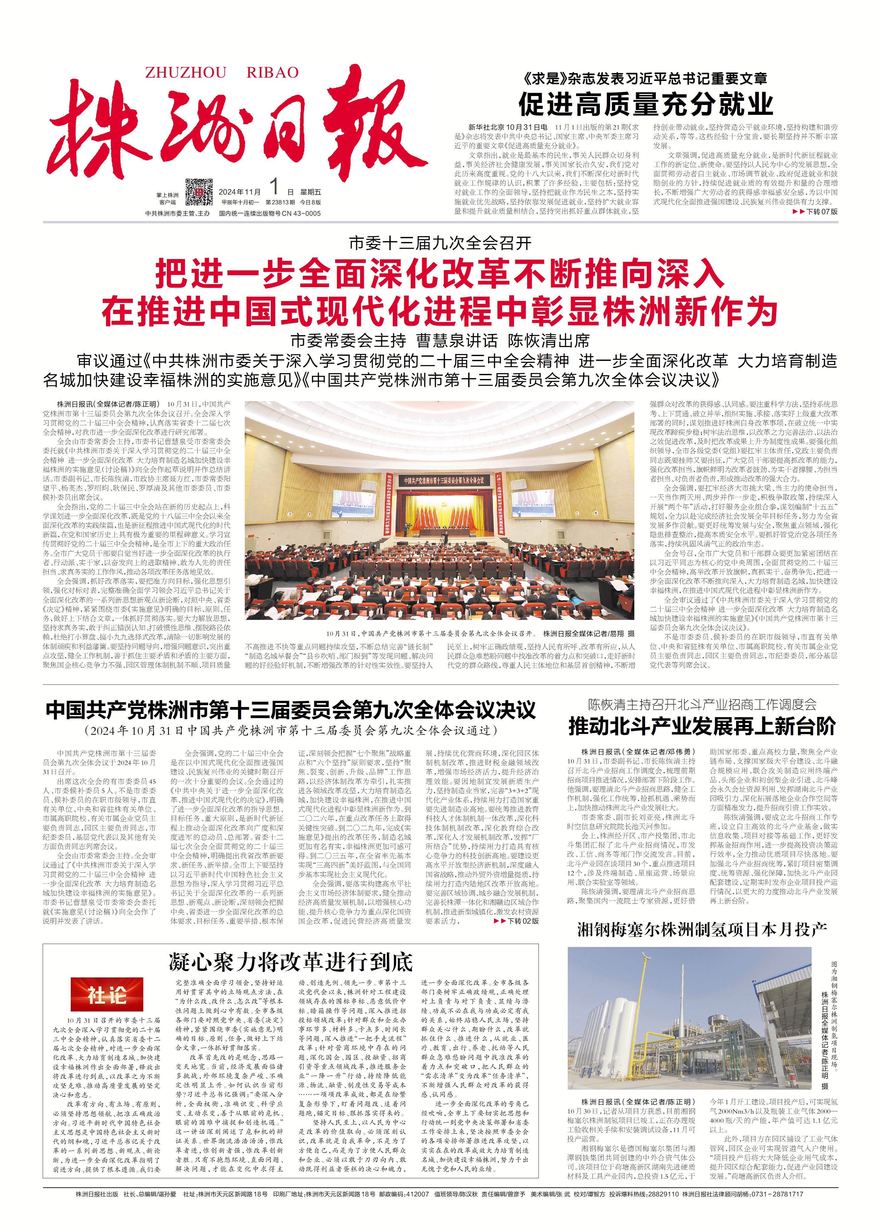 11月1日,《株洲日报》01版