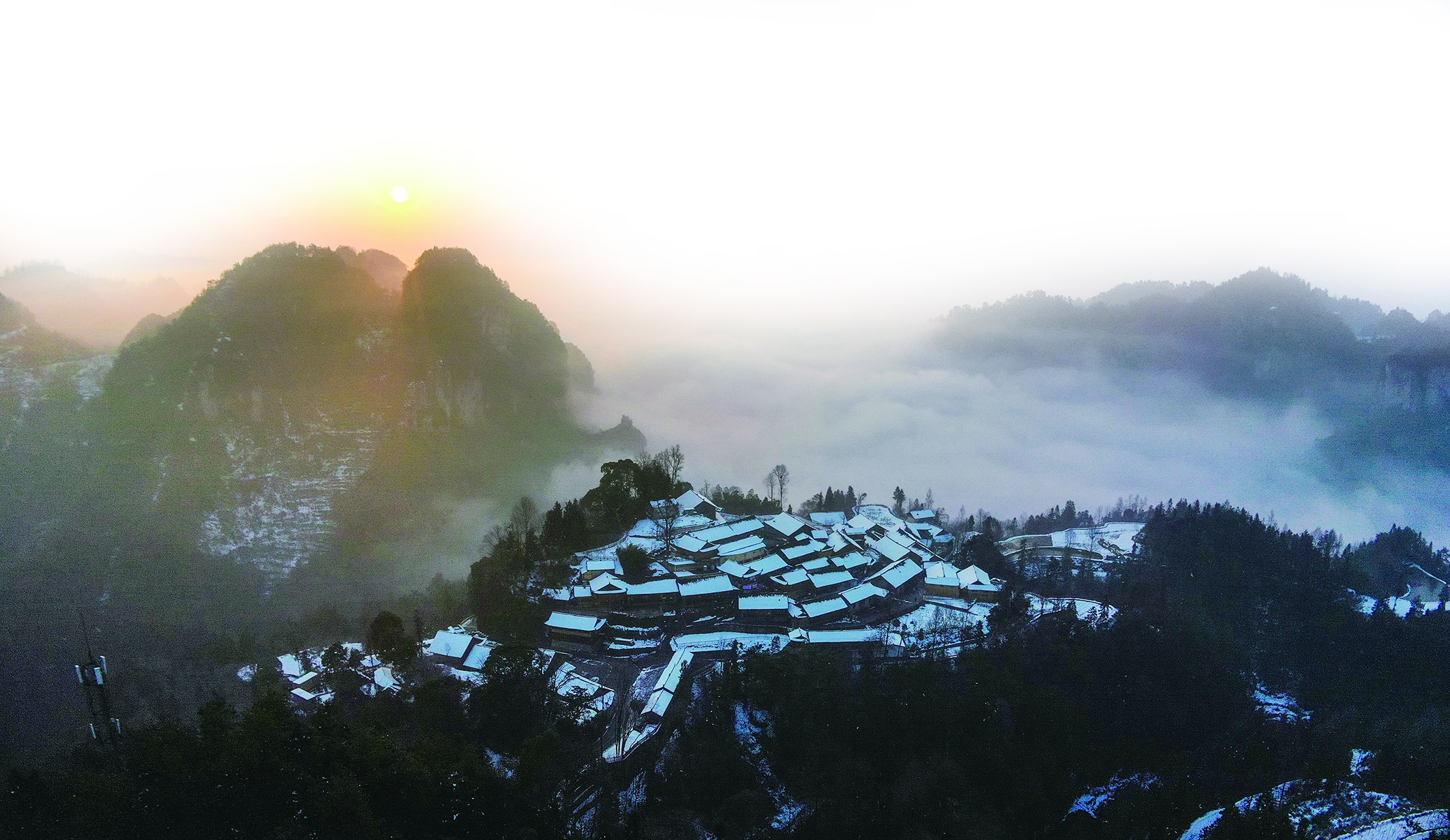 湖南省湘西土家族苗族自治州花垣县双龙镇十八洞村雪后景色(2022年2月24日摄,无人机照片)。 新华社发(龙恩泽 摄) 湖南省湘西土家族苗族自治州花垣县双龙镇十八洞村雪后景色(2022年2月24日摄,无人机照片)。 新华社发(龙恩泽 摄)