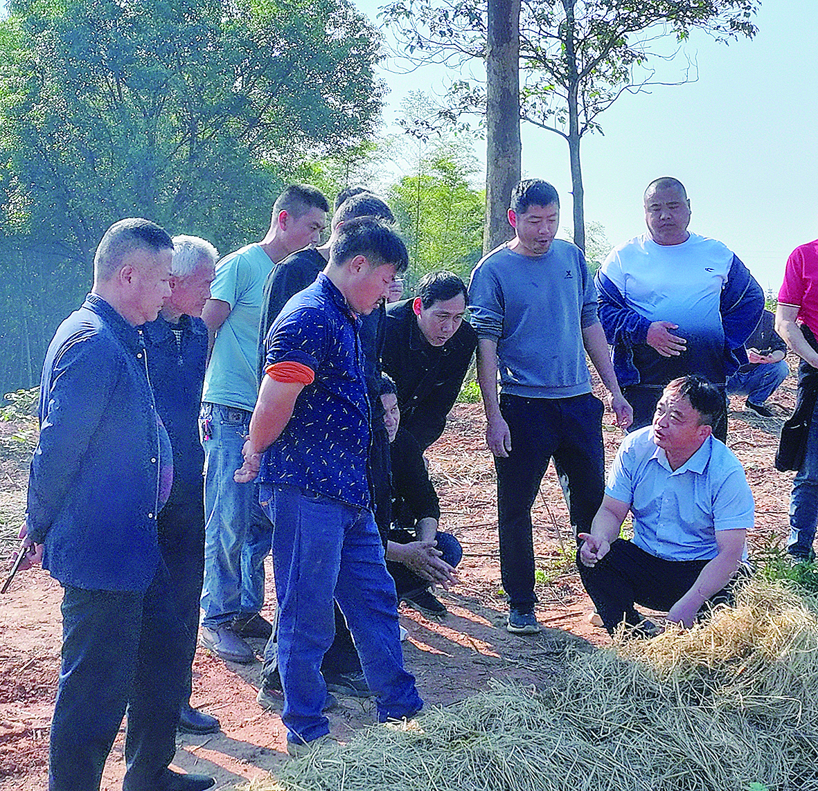 日前,位于渌口区渌口镇新城村的金盟熹农业公司红松茸种植基,一场现场观摩会在这里举行,该区有闲置设施大棚的种植户齐聚一堂,学习提高秸秆和大棚综合利用率的秘诀。