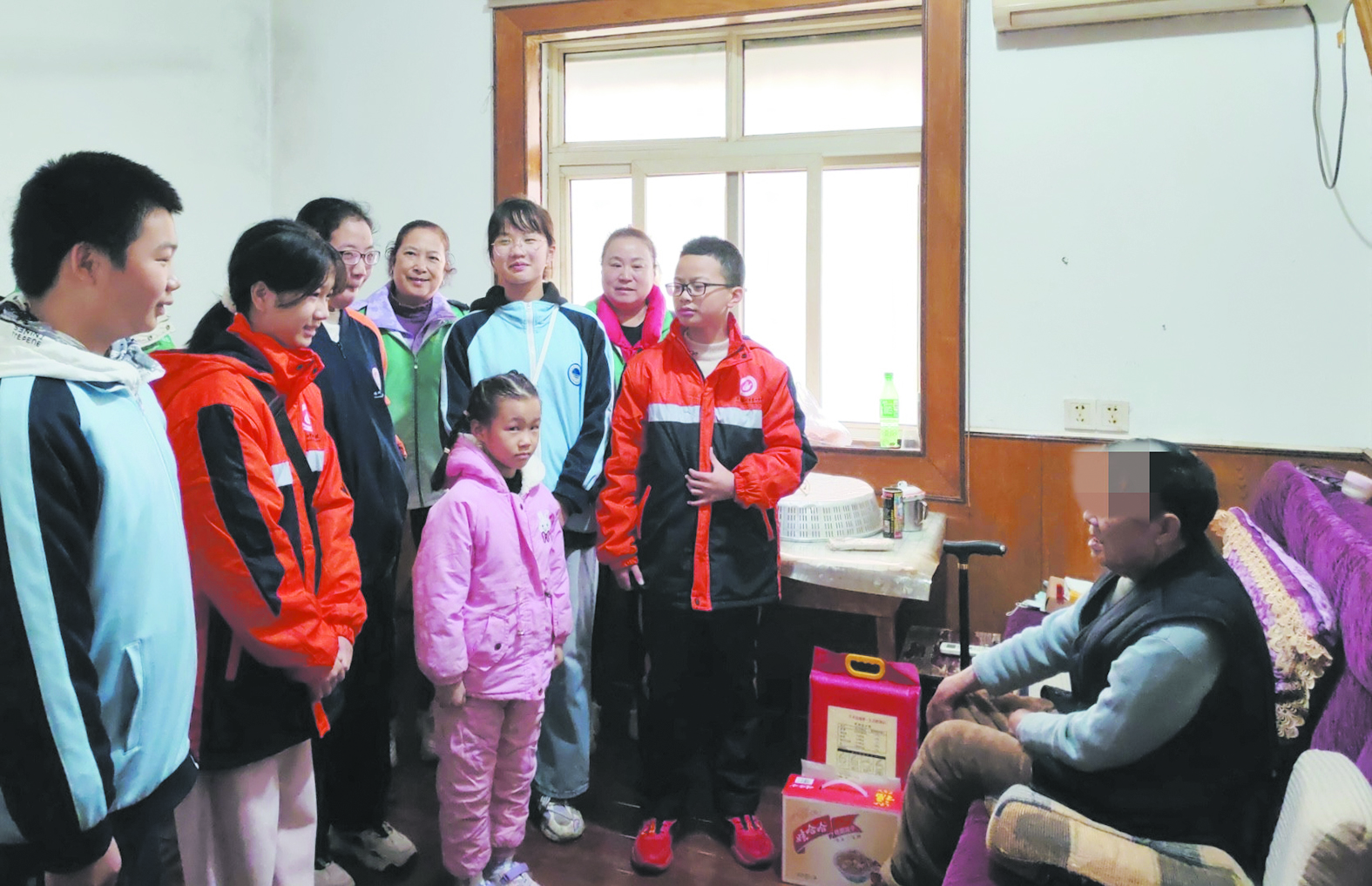 11月24日,荷塘区茨菇塘街道六〇一社区,小茨微檬志愿服务中心组织来自多所学校的25名初中生开展“大手牵小手”爱心传递活动。学生们筹集零花钱购买物资,在志愿者、家长陪同下,分组对5名独居老人进行了走访。