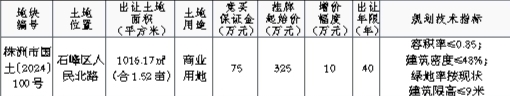 七、本次网上挂牌出让的详细资料和具体要求,见《株洲市网上挂牌出让国有建设用地使用权规则》、《株洲市国有建设用地使用权网上出让系统操作说明》和《株洲市国有建设用地使用权网上挂牌出让须知》等文件,有意竞买者可登录株洲市公共资源交易平台******查询。申请人可于2024年11月26日至2024年12月23日,在网上浏览或下载本次挂牌出让文件,并按上述文件规定的操作程序参加竞买。
