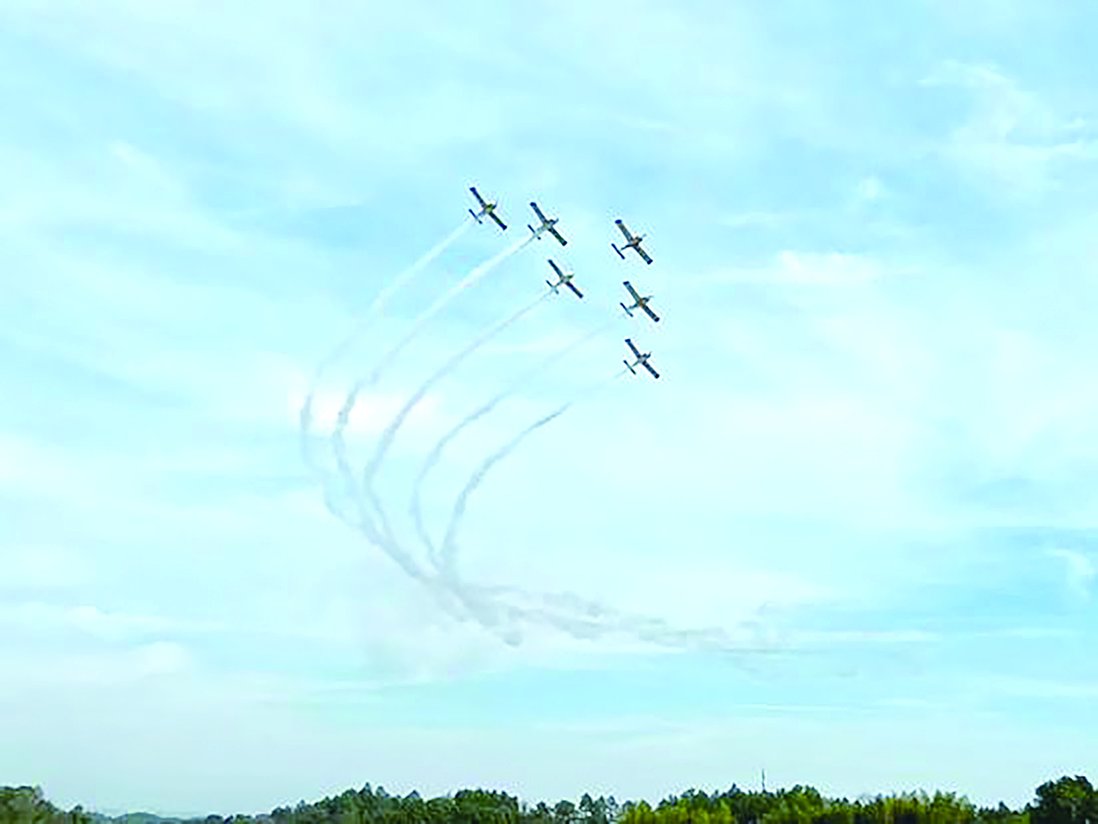 山河飞行表演队成立10周年 首次6机编队表演在芦淞机场上演
