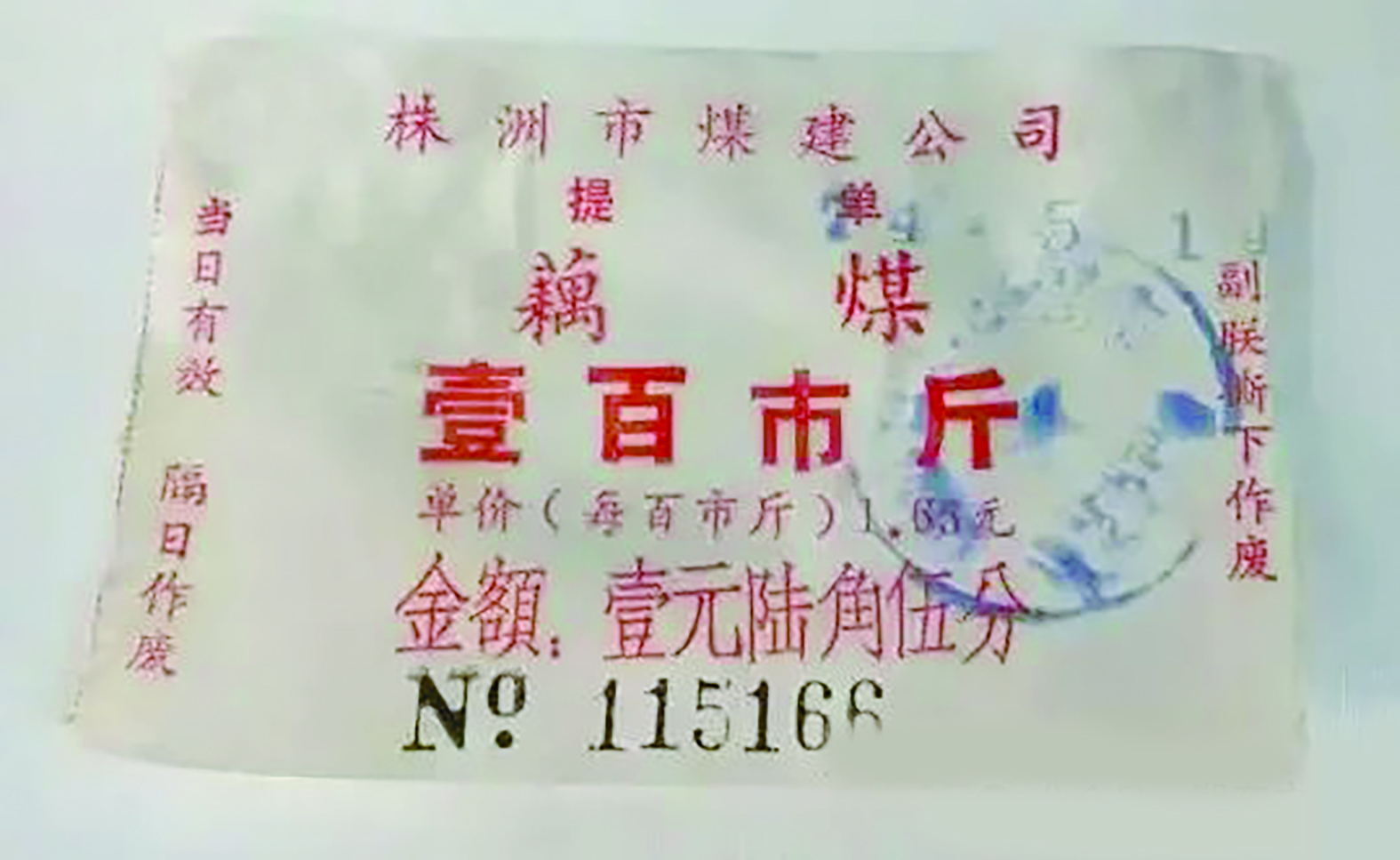不过,那时国家实行计划经济,物资供应全凭票证购买。从我保留的居民用煤供应证的记载来看,1971年四口人藕煤供应量为140斤,平均每人35斤,如一人立户,则有50斤。从我保留的1974年的藕煤票则可以知道,100斤藕煤售价是“壹元陆角伍分”,200斤藕煤的售价是“叁元叁角整”。从我保留的1989和1990年的藕煤票来看,如果不买藕煤,也可换买散煤,其比例是50公斤藕煤能换买散煤42.5公斤。以此类推。