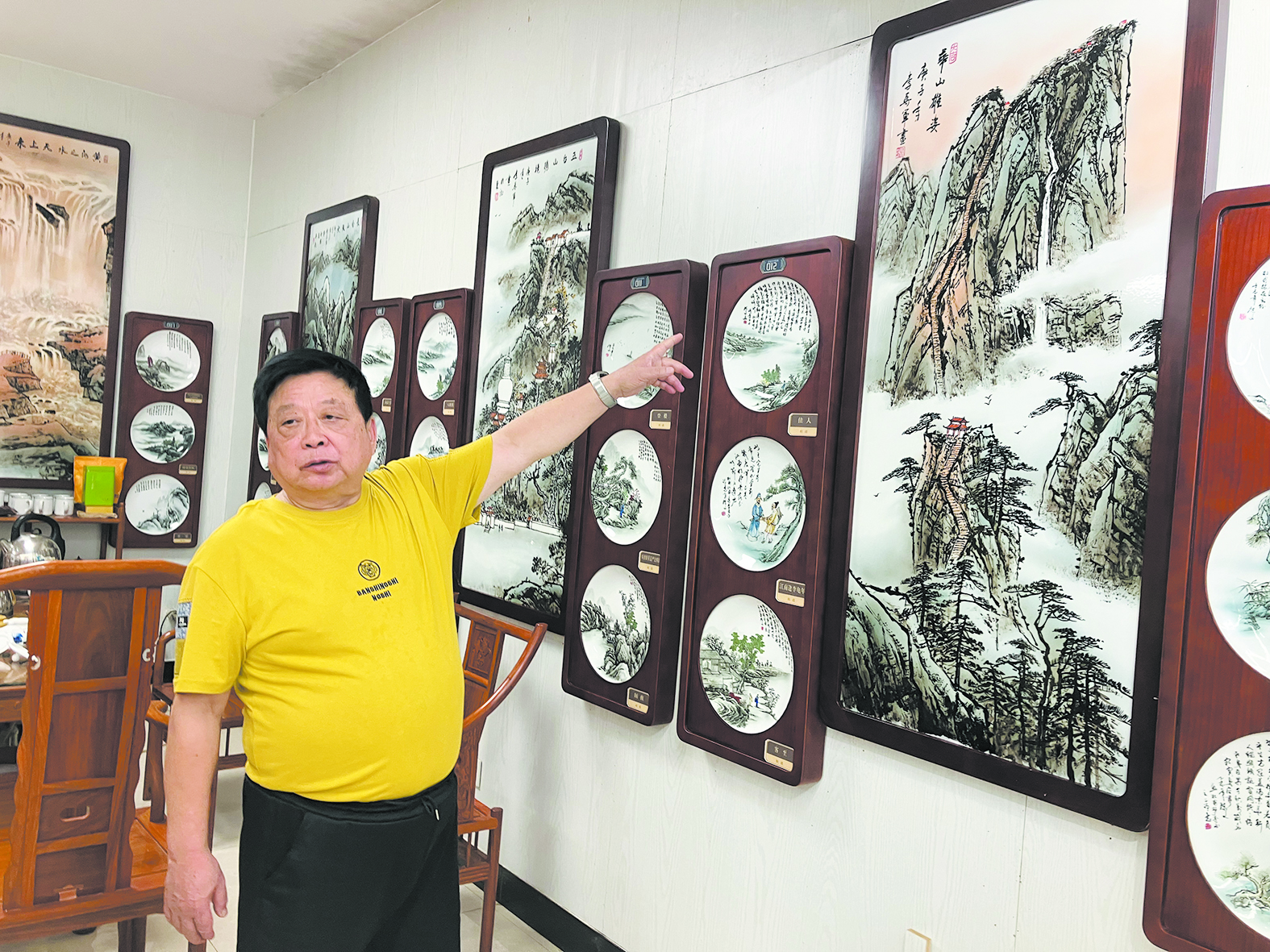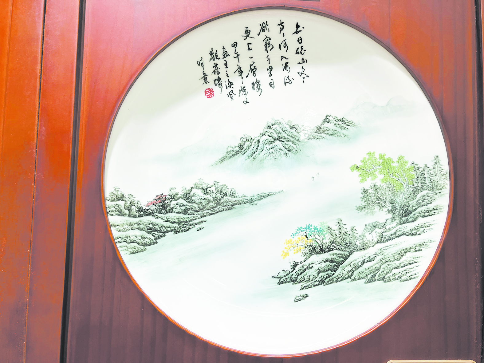 诗句与意境画并茂的瓷板画。 记者/姚时美 摄