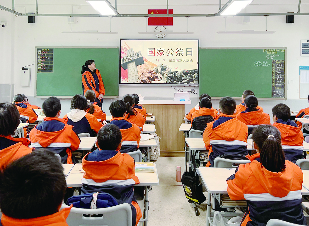 在市二中枫溪学校初中部,学校组织开展了“铭记历史,勿忘国殇”主题班会,旨在激励学生继承发扬爱国主义民族精神,铭记历史,勿忘国耻。班级讲解员们针对战场图片、历史文献、人物等进行讲解介绍,结合PPT、视频等形式,同学们更加深刻了解到南京大屠杀以及侵华战争期间的历史资料,深入了解那段可歌可泣的历史,激发学生们的爱国主义情感。