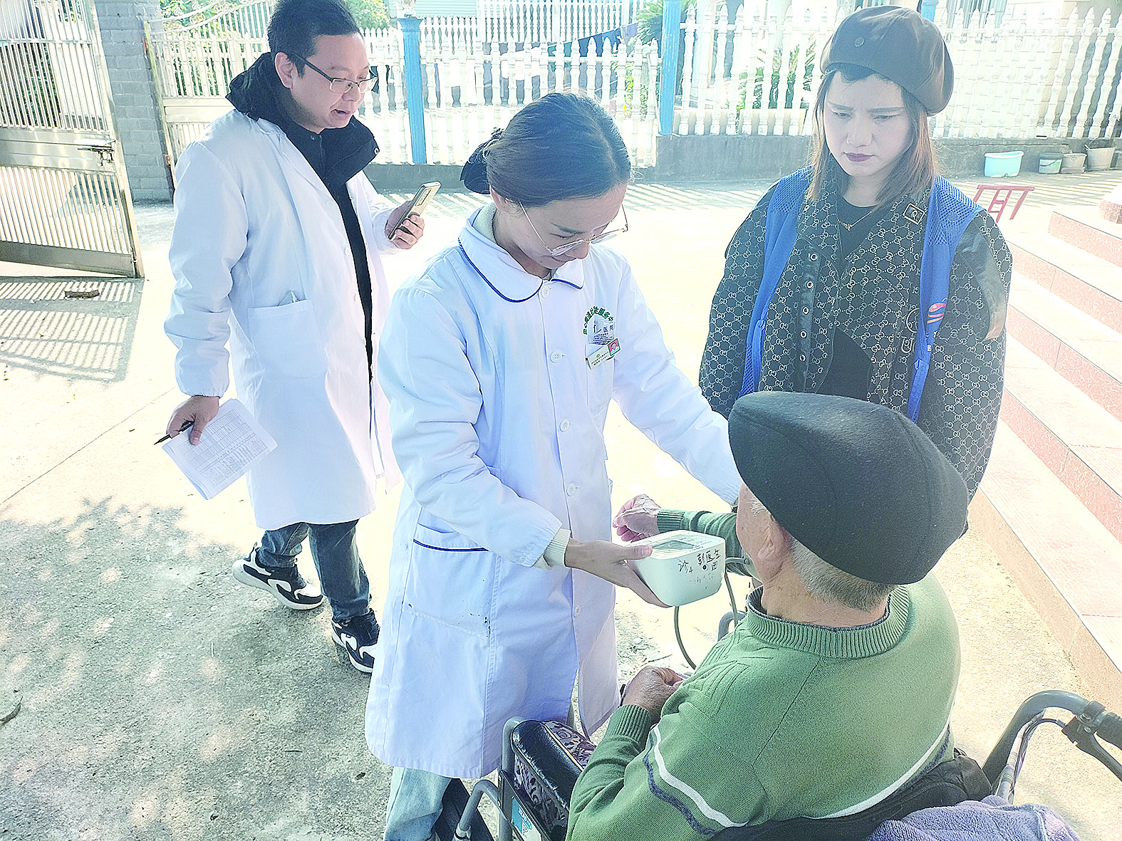 12月3日,石峰区田心街道社区卫生服务中心医护人员携带医疗设备,来到田心村社区,上门为32名行动不便的80岁以上高龄老人提供血压、血糖等常规检查,并根据每位老人的具体情况,提供个性化的健康咨询和生活指导。社区网格员则负责记录老人们的健康信息,确保数据的准确性和完整性。