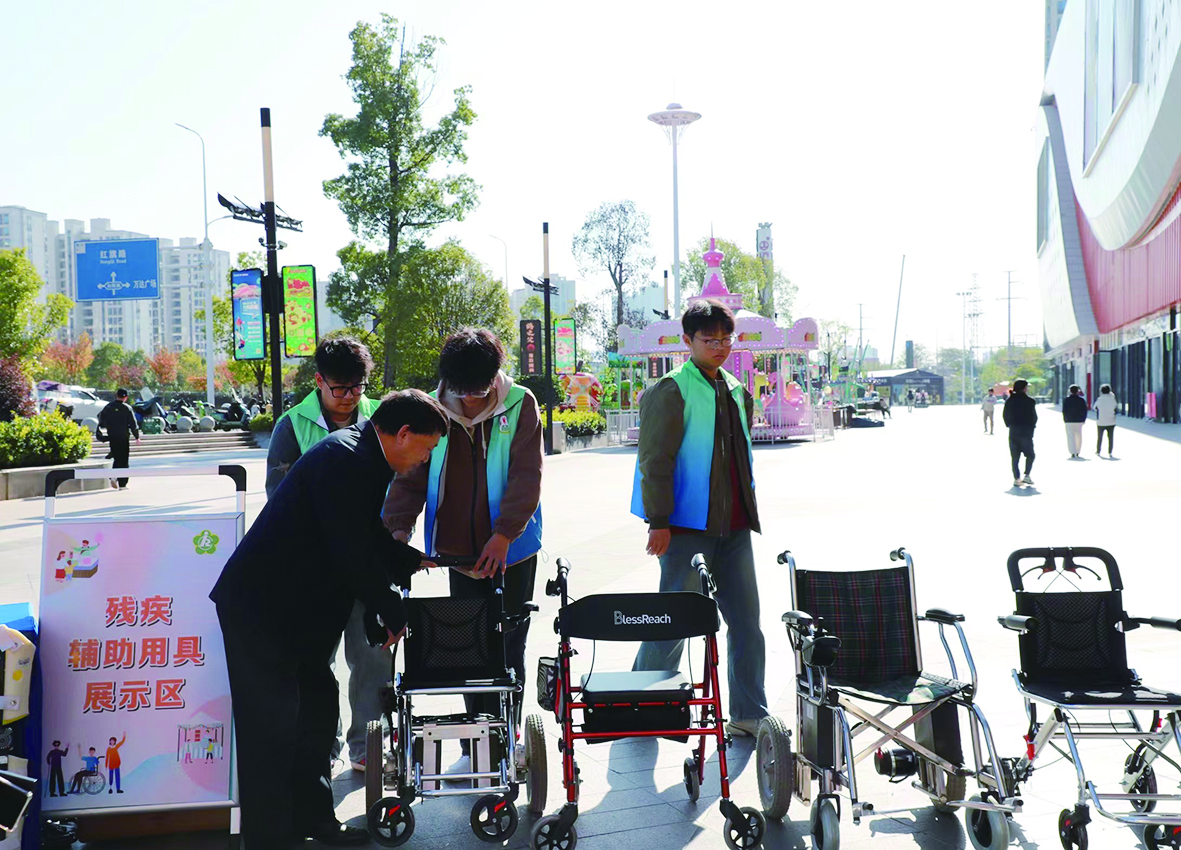 11月28日,石峰区残联和学林街道办事处携手在万达广场开展“青春学林,温暖同行”国际残疾人日活动。活动现场热闹非凡,花鼓戏、快板、舞蹈等精彩的文艺节目接连登场,有奖问答、套圈等小游戏欢乐上演,吸引残疾人朋友和社区居民踊跃参与。现场还展示了残疾人朋友精心制作的手工艺品;有医务人员为前来咨询的残疾人和居民朋友检测视力听力、测量血压血糖、提供健康指导,有爱心志愿者为大家义务理发。图为志愿者向残疾朋友展示和介绍残疾辅助用具。