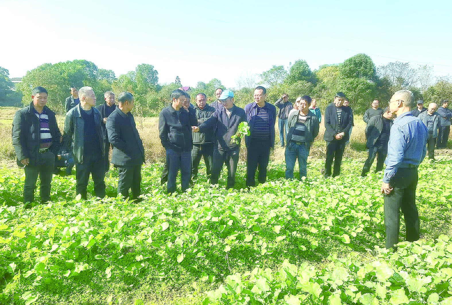 12月2日,冬日的暖阳洒满田间地头,醴陵市船湾镇增加滩村,成片的油菜绿意盎然、生机勃勃。在一处油菜田里,当地50名油菜种植大户,认真聆听高级农艺师徐源辉(中间戴蓝色帽子者)的现场授课,了解油菜病虫害绿色综合防控措施。