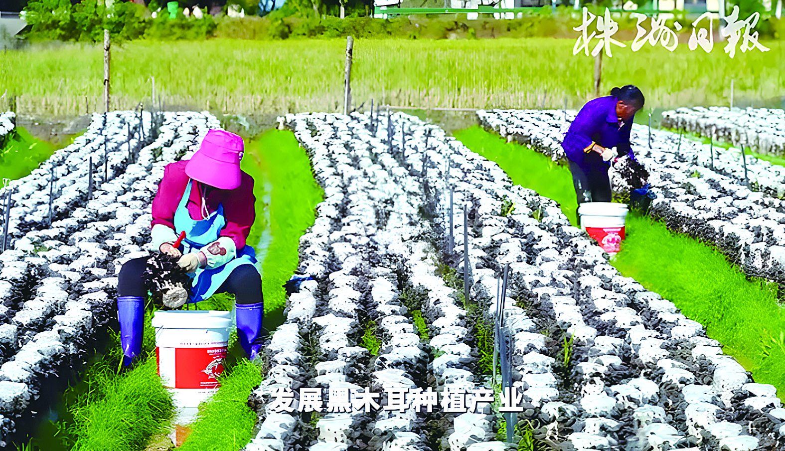 渌口区朱亭镇双江村20万棒黑木耳迎来采摘季。