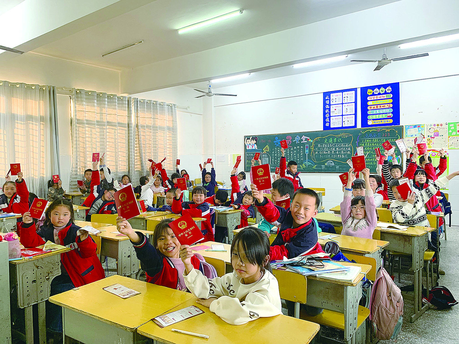 攸县文化路小学的同学们开心领到崭新的民法典。 通讯员供图