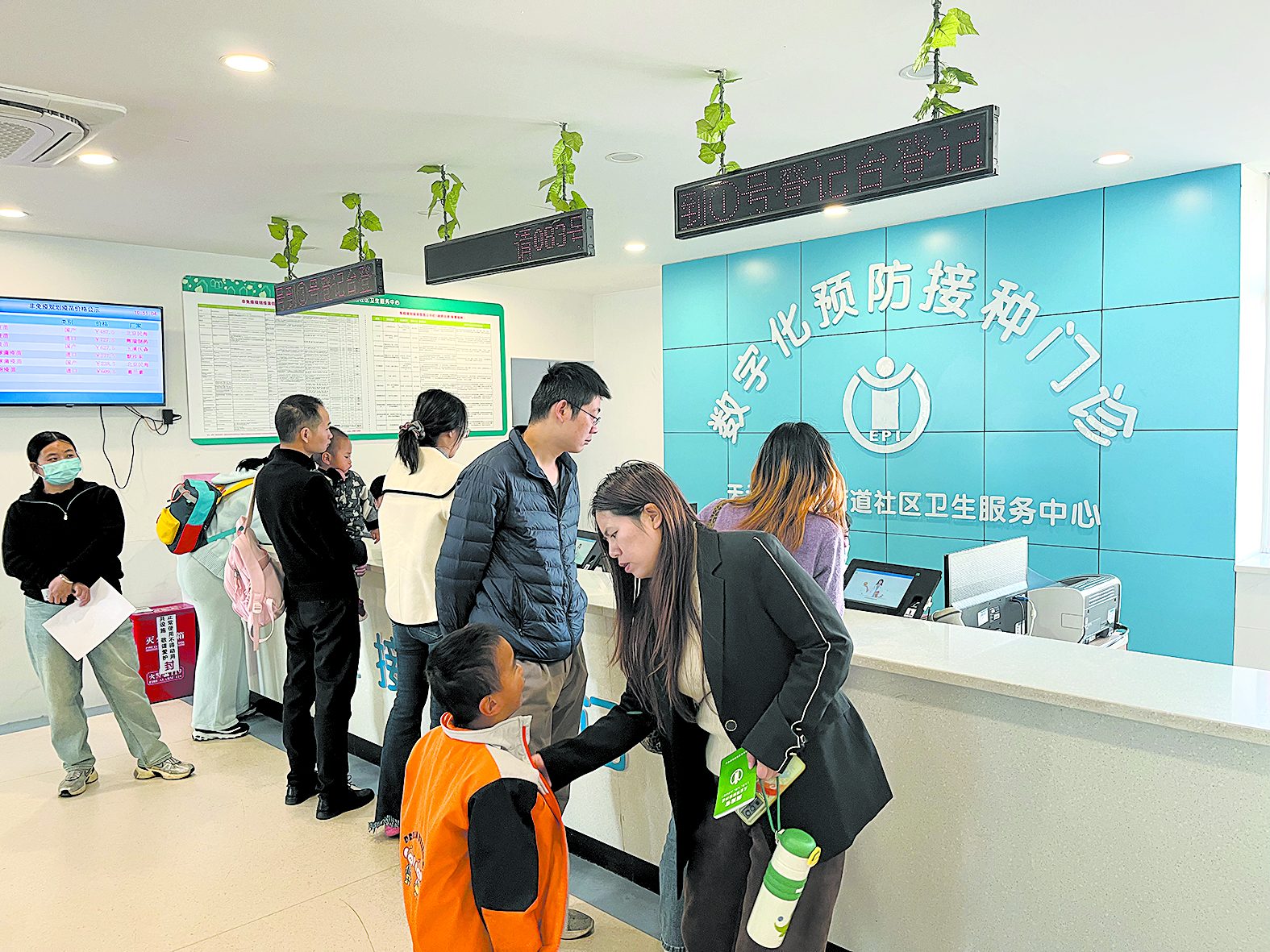 数字化预防接种门诊,来了不少大人和小孩。 记者/刘平 摄