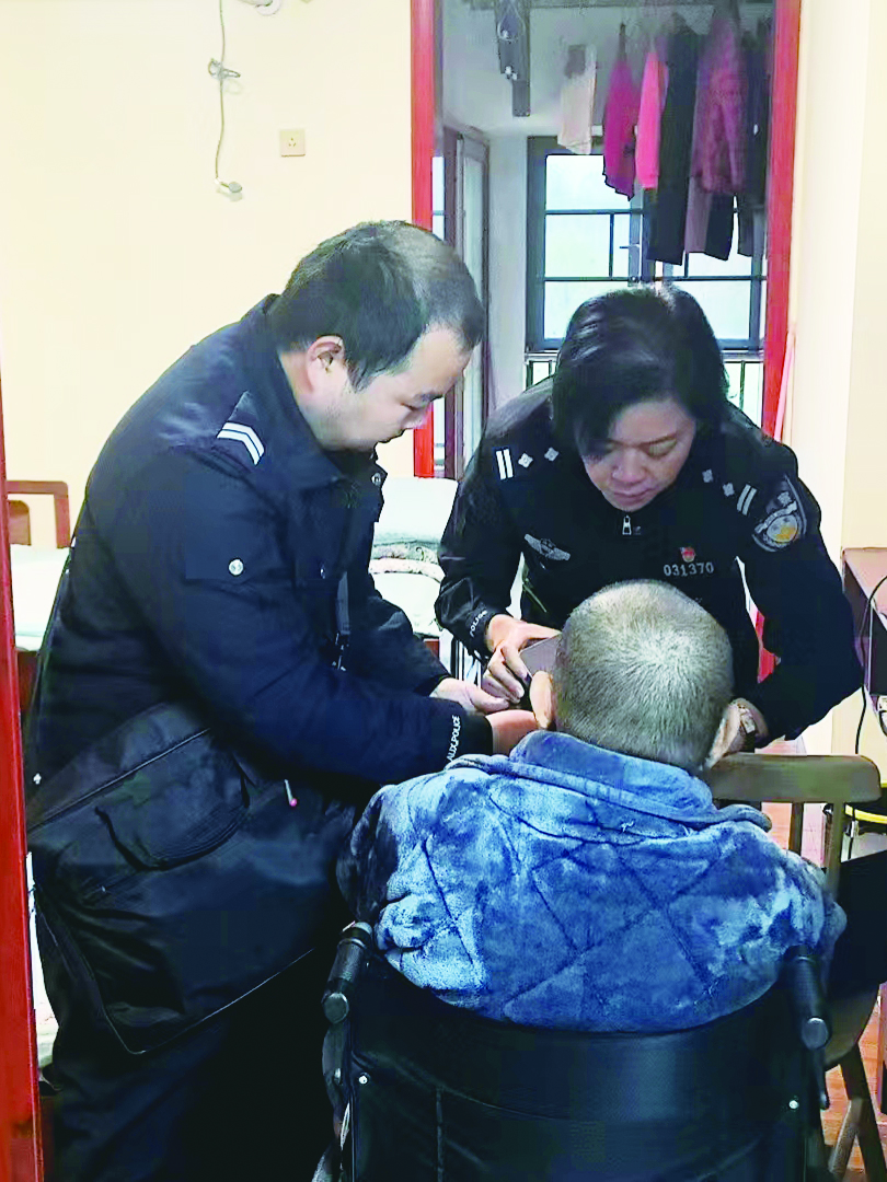 12月5日上午,市公安局芦淞分局枫溪派出所社区民警张娟、户籍民警胡桢携带照相、指纹采集等设备,将户籍窗口搬进盛康养老院,为行动不便的老人采集相片和指纹等信息,以便更好办理第二代居民身份证。