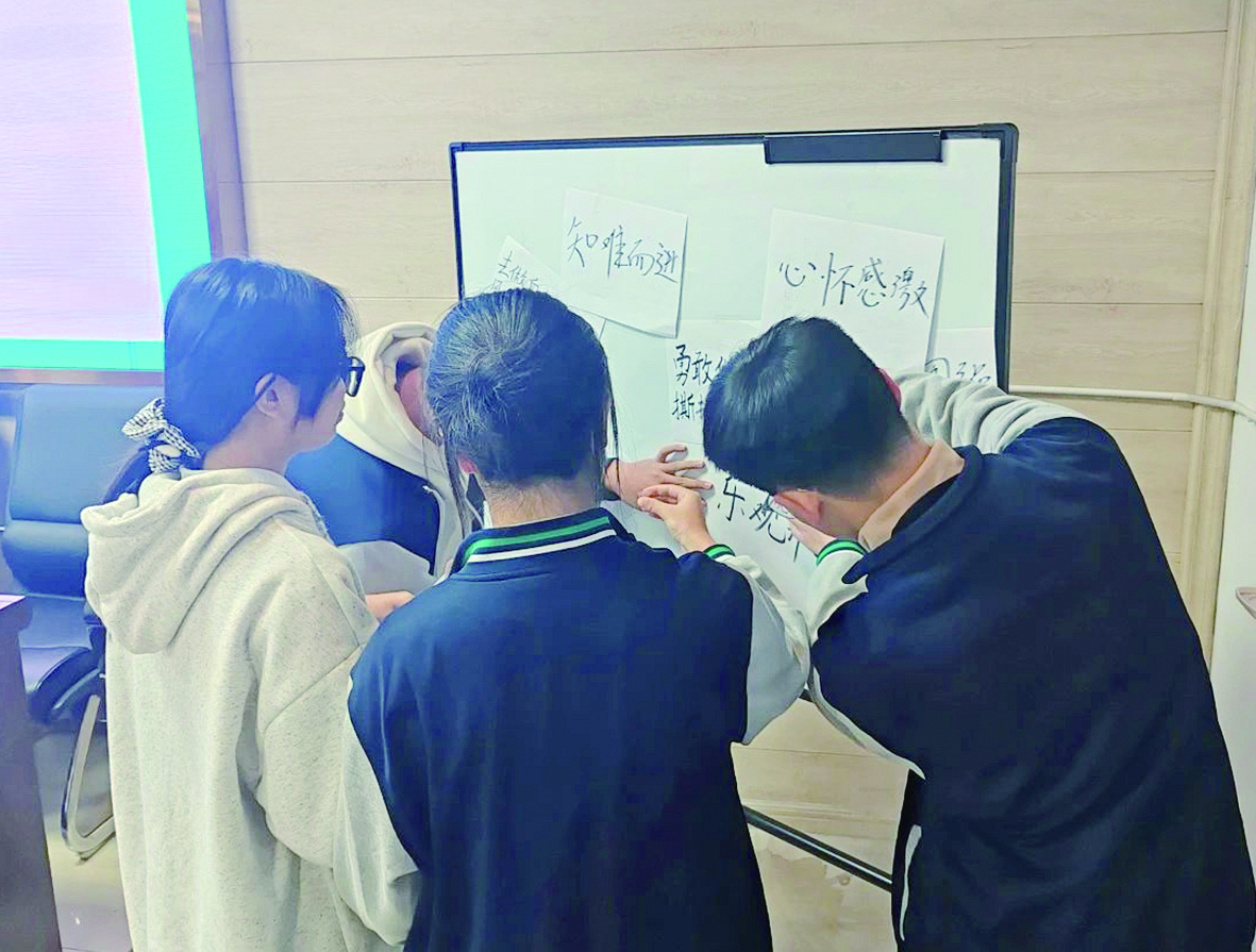 班会活动中,同学们分享保持阳光心态的方法。 记者/戴凛 摄