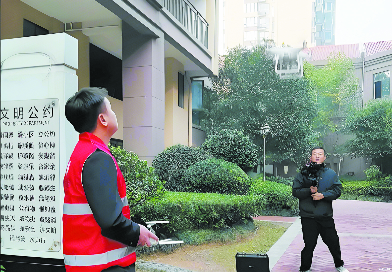 保险方在小区开展无人机巡检。