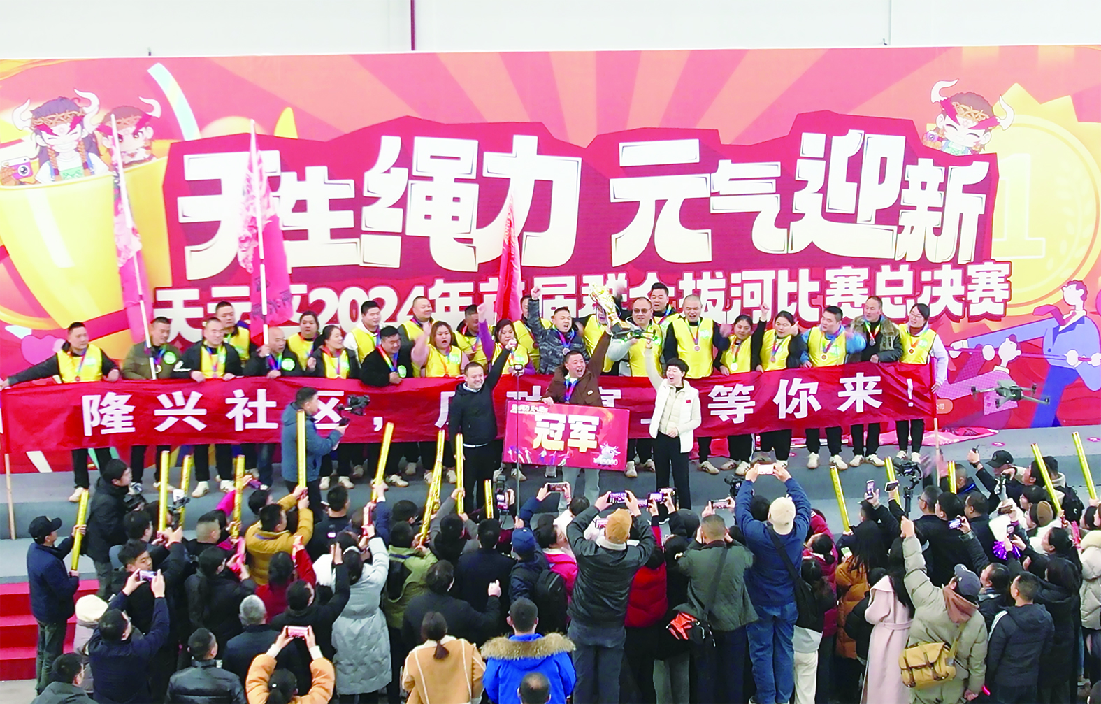 12月28日,天元区2024年首届群众拔河比赛总决赛举行。经过激烈角逐,隆兴社区队获得最后冠军。株洲日报全媒体记者/刘震 摄
