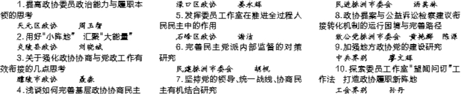 株洲市政协2024年度人民政协理论征文“十佳优秀论文”名单