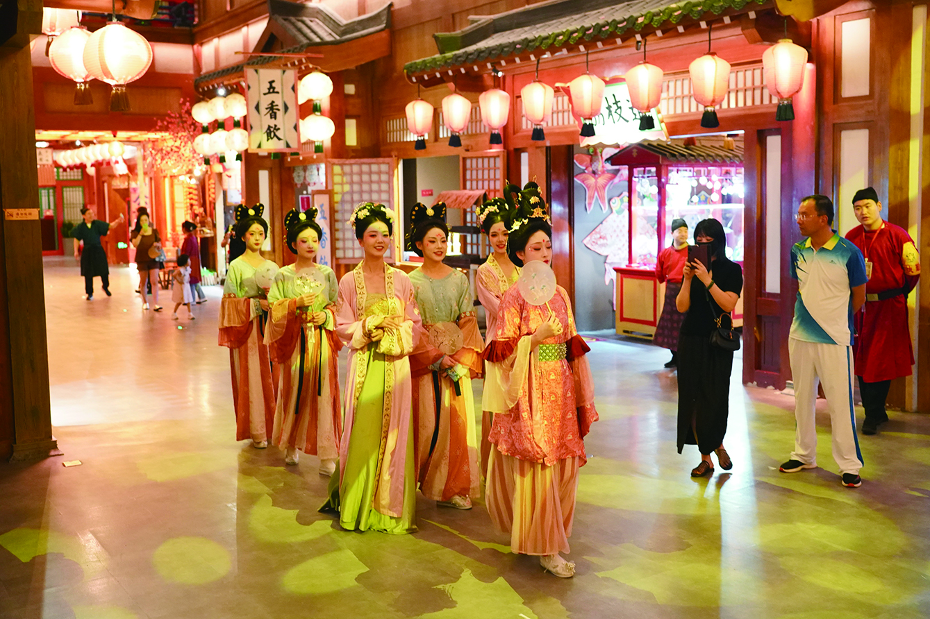 图为演员在西安长安十二时辰景区巡游(5月19日摄)。 新华社记者 邵瑞 摄