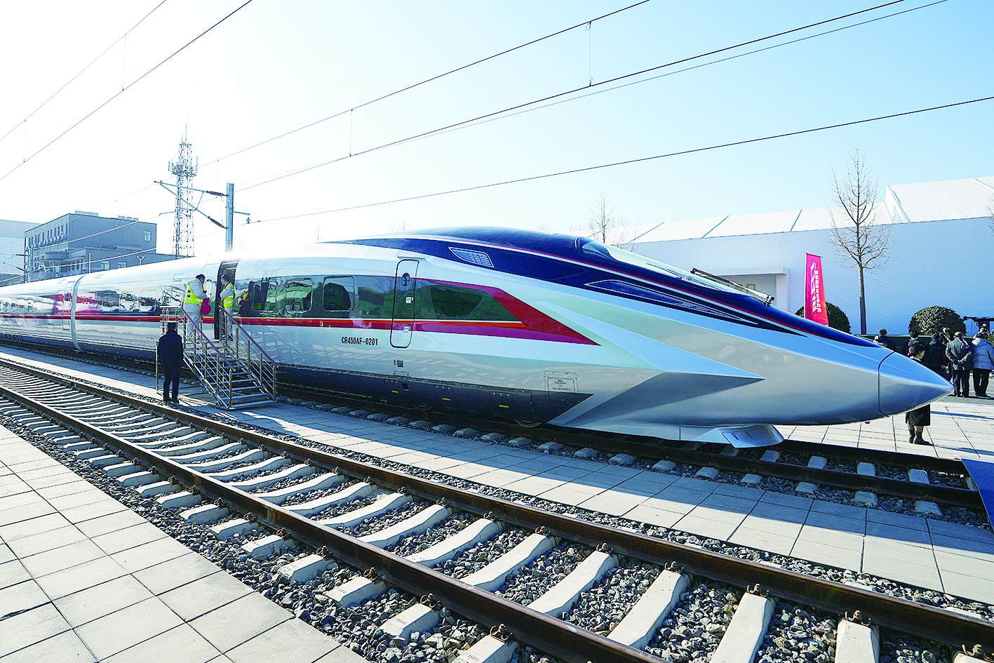 12月29日拍摄的CR450AF动车组样车。 新华社记者 鞠焕宗 摄