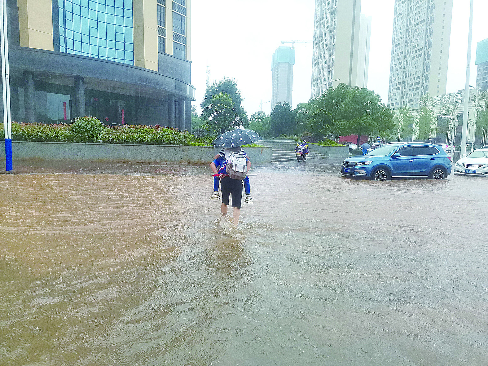 2024年6月25日,因强降雨天气,城区多个路段积水,一位市民背着学生一次次蹚水过马路的视频随之火爆全网。