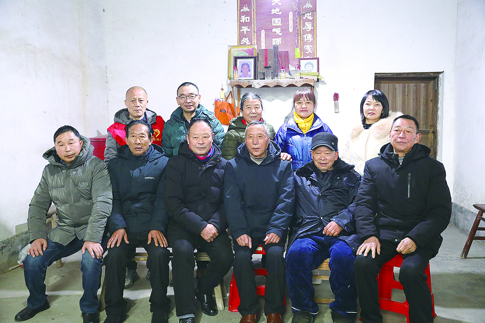 王吕初(王安良儿子)、王浩父子与几位恩人拍“全家福”(前排从左至右分别为卿中华、彭新初、杨富生、刘全生、王吕初、钟英雄,后排左二为王浩)