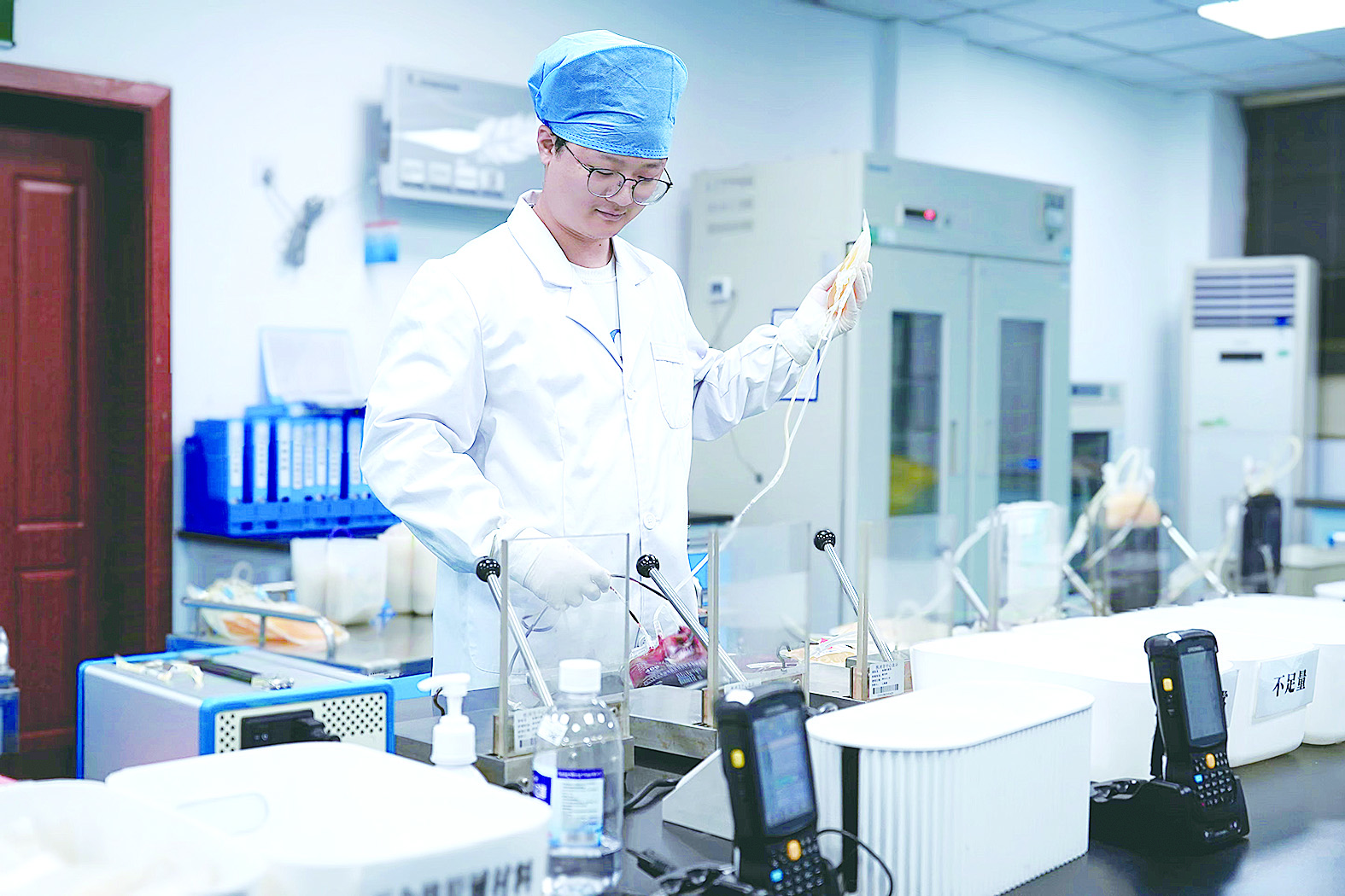 市中心血站工作人员晏伟正在制备血液制品。 受访者供图